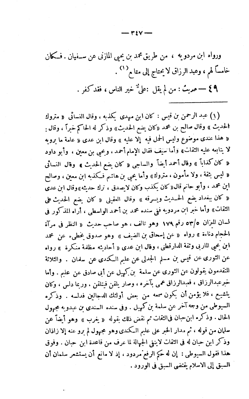 49 - حديث: " مَنْ لَمْ يَقُلْ: عَلِيٌّ خَيْرُ الناس، فقد كفر".