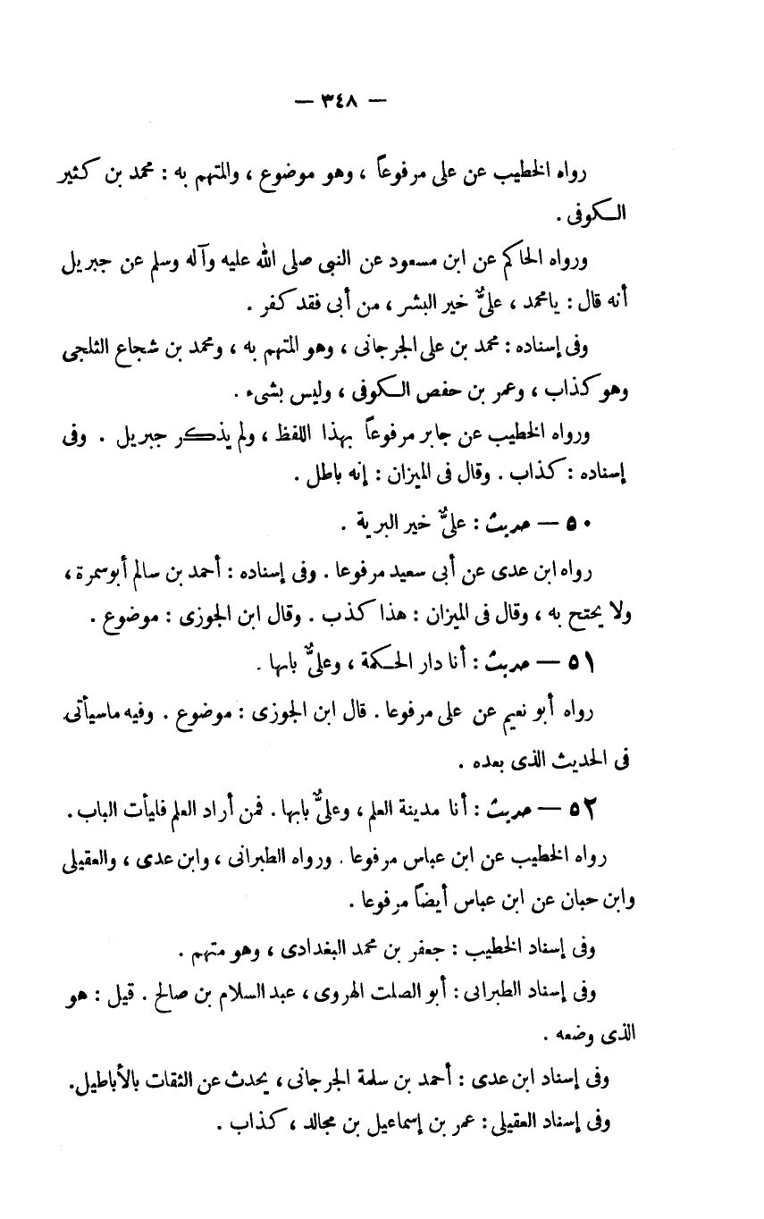 52 - حديث: " أَنَا مَدِينَةُ الْعِلْمِ، وَعَلِيٌّ بَابُهَا. فَمَنْ أَرَادَ الْعِلْمَ فَلْيَأْتِ الْبَابَ".