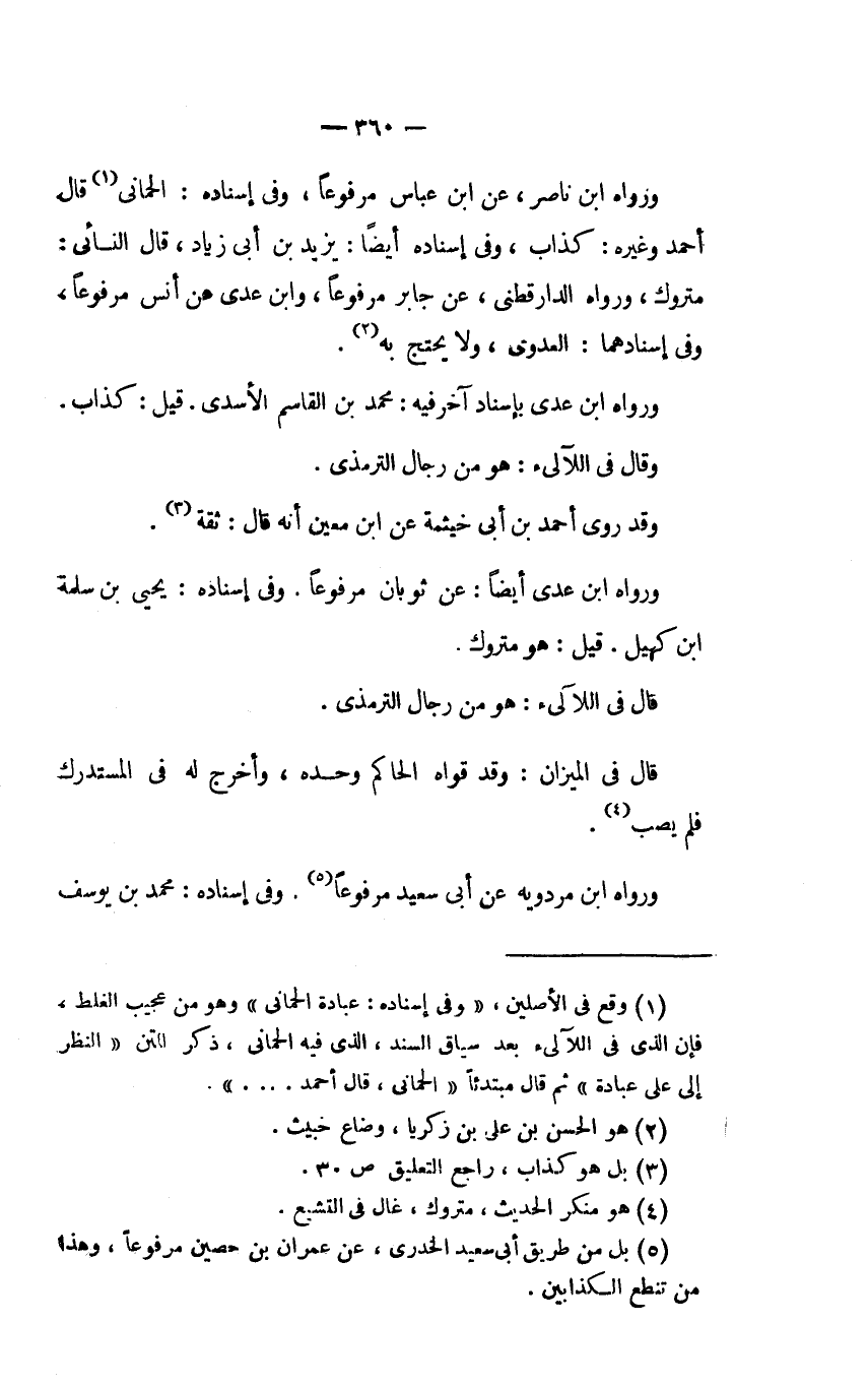 (1) وقع في الأصلين، (وفي إسناده: عبادة الحماني) وهو من عجيب الغلط، فإن الذي في اللآلىء بعد سياق السند، الذي فيه الحماني، ذكر المتن (النظر إلى علي عبادة) ثم قال مبتدئا (الحماني، قال احمد.........) .