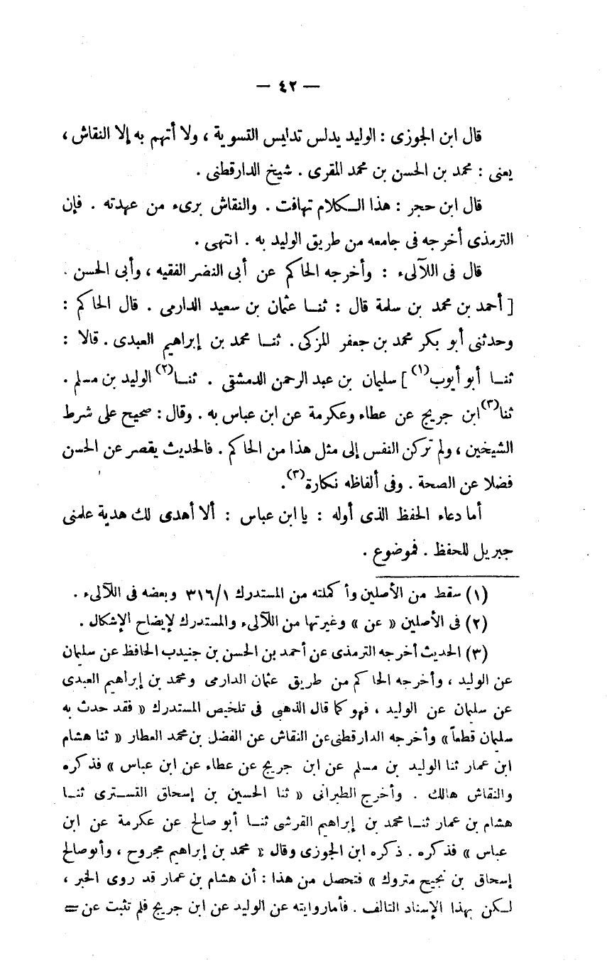 قَالَ ابْنُ حَجَرٍ: هَذَا الْكَلامُ تَهَافِتٌ. والنقَّاشُ بَرِيءٌ مِنْ عُهْدَتِهِ. فَإِنَّ التِّرْمِذِيَّ أَخْرَجَهُ مِنْ طَرِيقِ الْوَلِيدِ بِهِ. انْتَهَى.