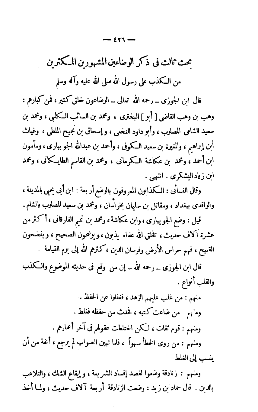 قال ابن الجوزي _ رحمه الله _ إن من وقع في حديثه الموضوعة والكذب والقلب أنواع.
