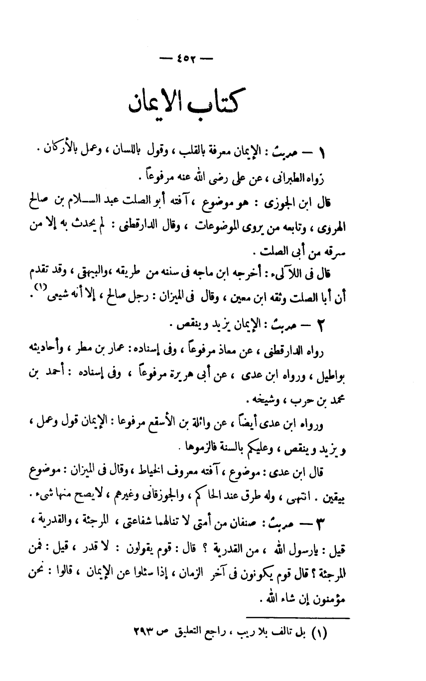 1 - حديث: "الإيمان معرفة بالقلب، وقول بالسان، وَعَمَلٌ بِالأَرْكَانِ".