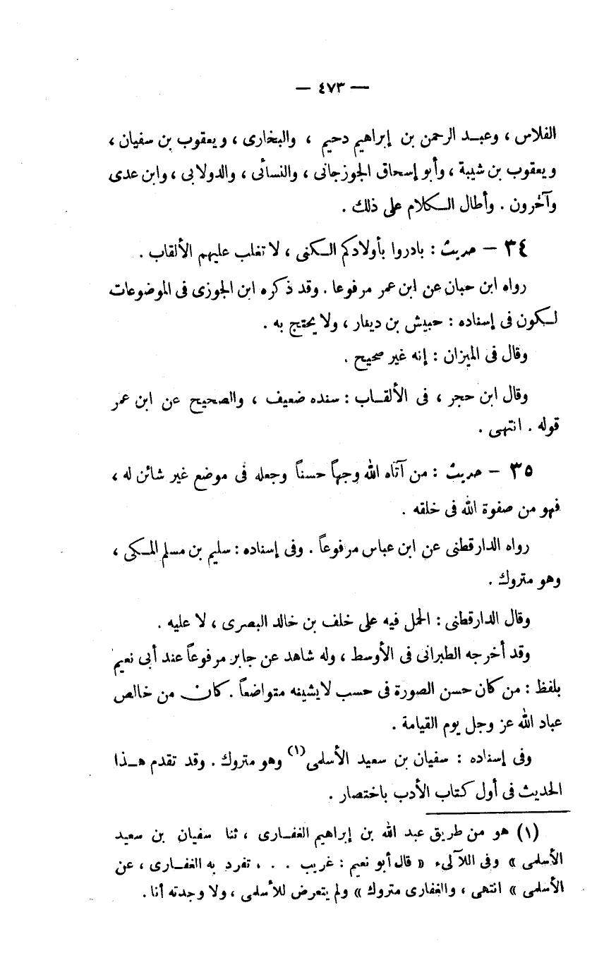 (1) هو من طريق عَبْدُ اللَّهِ بْنُ إِبْرَاهِيمَ الْغِفَارِيُّ، ثنا سفيان بن سعيد الأسلمي) وفي اللآلىء (قال أبو نعيم: غريب............، تفرد به الغفاري، عن الأسلمي) انتهى، والغفاري متروك) ولم يتعرض للأسلمي، ولا وجدته أنا