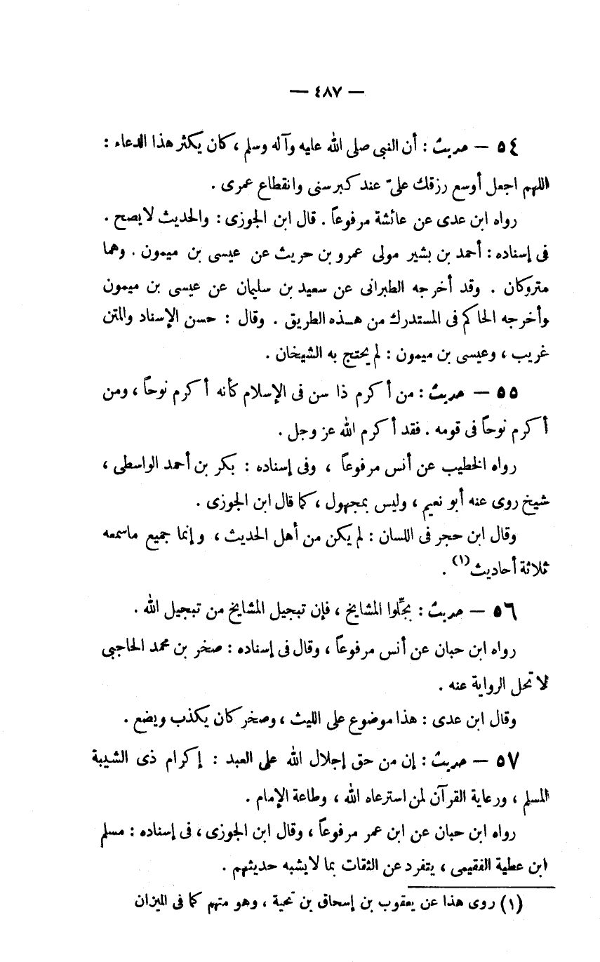 55 - حديث: "مَنْ أَكْرَمَ ذَا سَنٍّ فِي الإِسْلامِ كَأَنَّهُ أَكْرَمَ نُوحًا، وَمَنْ أَكْرَمَ نُوحًا فِي قَوْمِهِ. فَقَدْ أَكْرَمَ اللَّهَ عَزَّ وَجَلَّ".