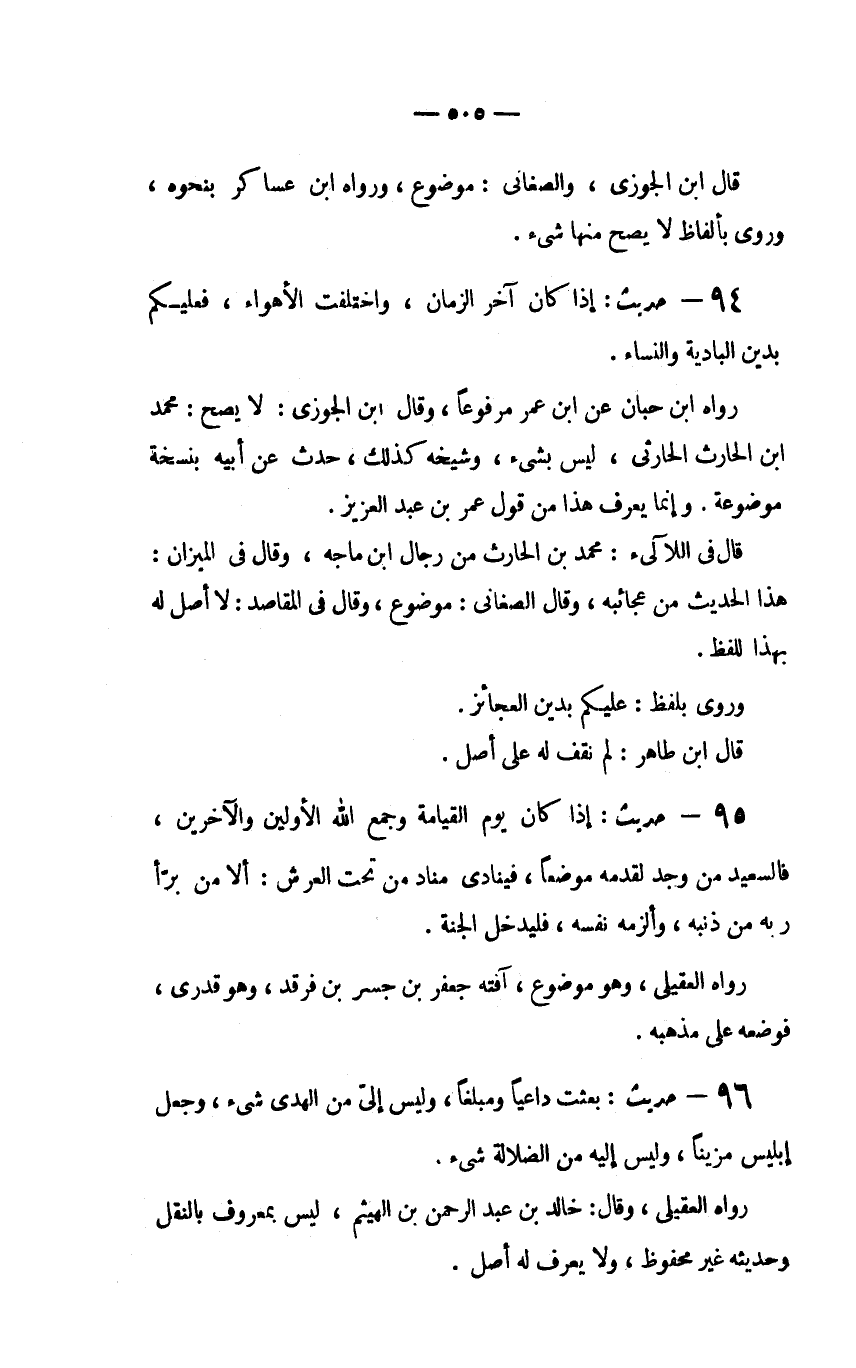 رَوَاهُ ابْنُ حِبَّانَ عَنِ ابْنِ عمر مرفوعًا، وقال ابن الجوزي: لا يصح: محمد ابن الحارث الحارثي، ليس بشيء، وشيخه كذلك، حدث عن أبيه بنسخة موضوعة. وإنما يعرف هذا من قول عمر بن عبد العزيز.