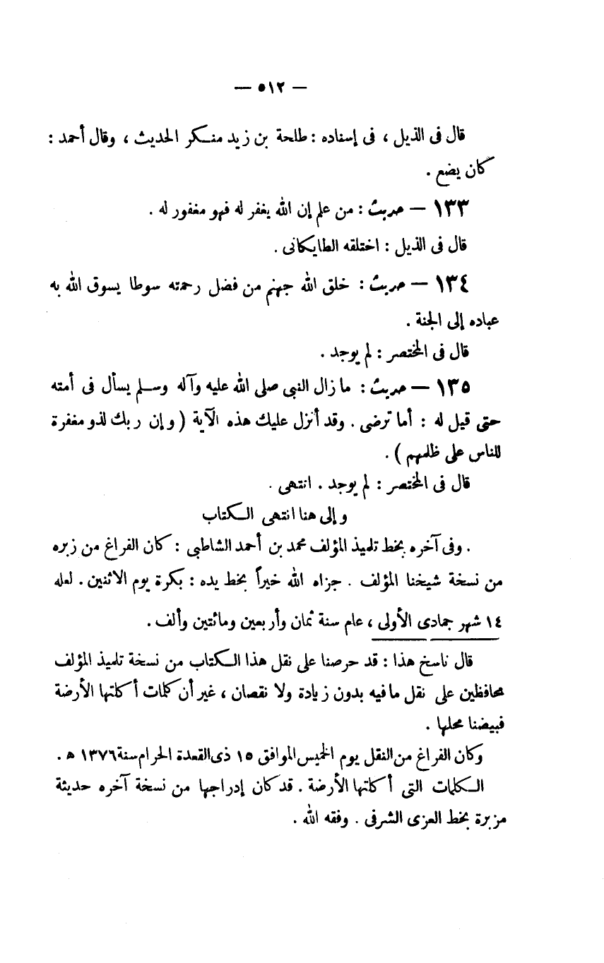 134 - حديث: " خَلَقَ اللَّهُ جَهَنَّمَ مِنْ فَضْلِ رَحْمَتِهِ سَوْطًا يَسُوقُ اللَّهُ بِهِ عِبَادَهُ إِلَى الْجَنَّةِ.