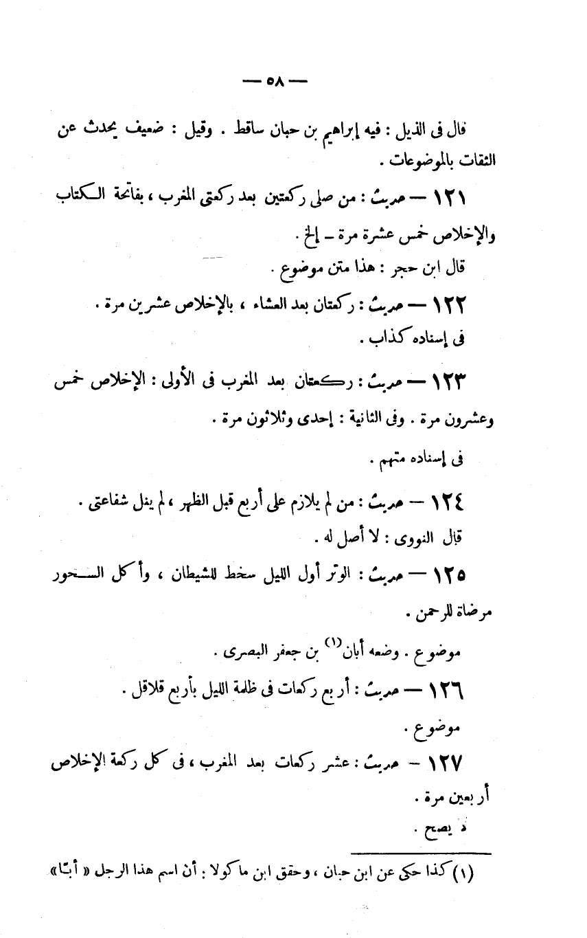 122 - حديث: "رَكْعَتَانِ بَعْدَ الْعِشَاءِ بِالإِخْلاصِ عِشْرِينَ مرة.