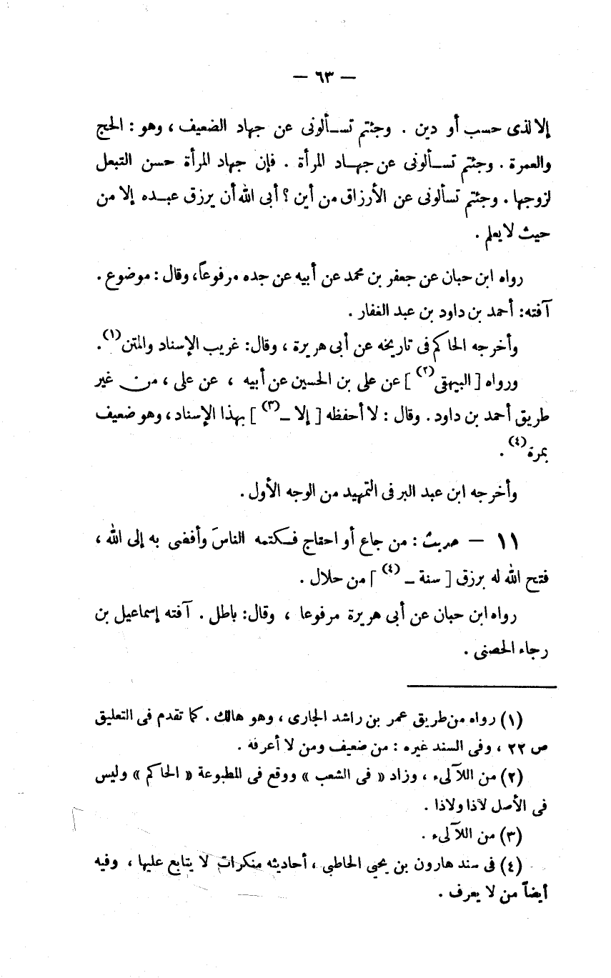 11 - حديث: "مَنْ جَاعَ أَوِ احْتَاجَ فَكَتَمَهُ النَّاسَ وَأَفْضَى بِهِ إِلَى اللَّهِ فتح الله له برزق [سنة _ (4) ] مِنْ حَلالٍ. رَوَاهُ ابْنُ حِبَّانَ عَنْ أَبِي هُرَيْرَةَ مَرْفُوعًا، وَقَالَ: بَاطِلٌ، آفَتُهُ إِسْمَاعِيلُ بْنُ رَجَاءٍ الحصني.