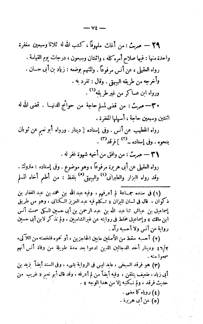 29 - حديث: "مَنْ أَغَاثَ مَلْهُوفًا كَتَبَ اللَّهُ لَهُ ثَلاثًا وَسَبْعِينَ مَغْفِرَةً وَاحِدَةٌ مِنْهَا: فِيهَا صَلاحُ أَمْرِهِ كُلِّهِ وَاثْنَتَانِ وَسَبْعُونَ دَرَجَاتٌ يَوْمِ الْقِيَامَةِ".