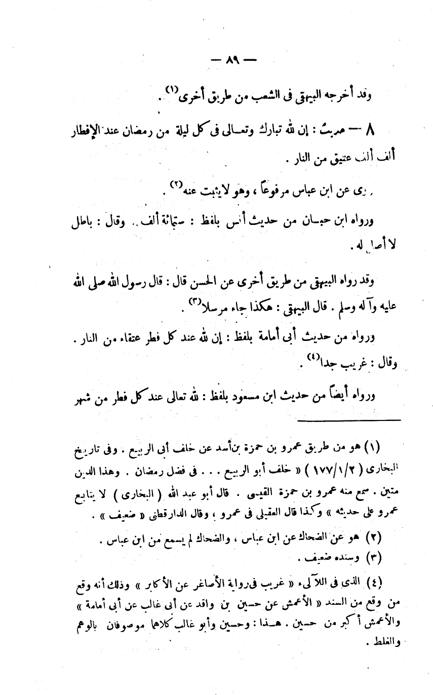 8 - حديث: "إن الله تَبَارَكَ وَتَعَالَى فِي كُلِّ لَيْلَةٍ مِنْ رَمَضَانَ عِنْدَ الإِفْطَارِ أَلْفَ أَلْفِ عَتِيقٍ مِنَ النَّارِ.