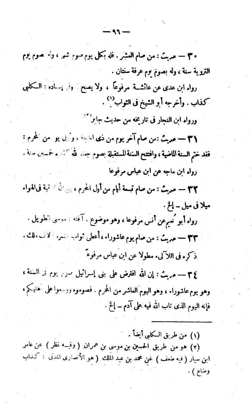 30 - حديث: "مَنْ صَامَ الْعَشْرَ فَلَهُ بِكُلِّ يَوْمٍ صَوْمُ شَهْرٍ وَلَهُ بِصَوْمِ يَوْمِ التَّرْوِيَةِ سَنَةٌ وَلَهُ بِصَوْمِ يَوْمِ عَرَفَةَ سَنَتَانِ".