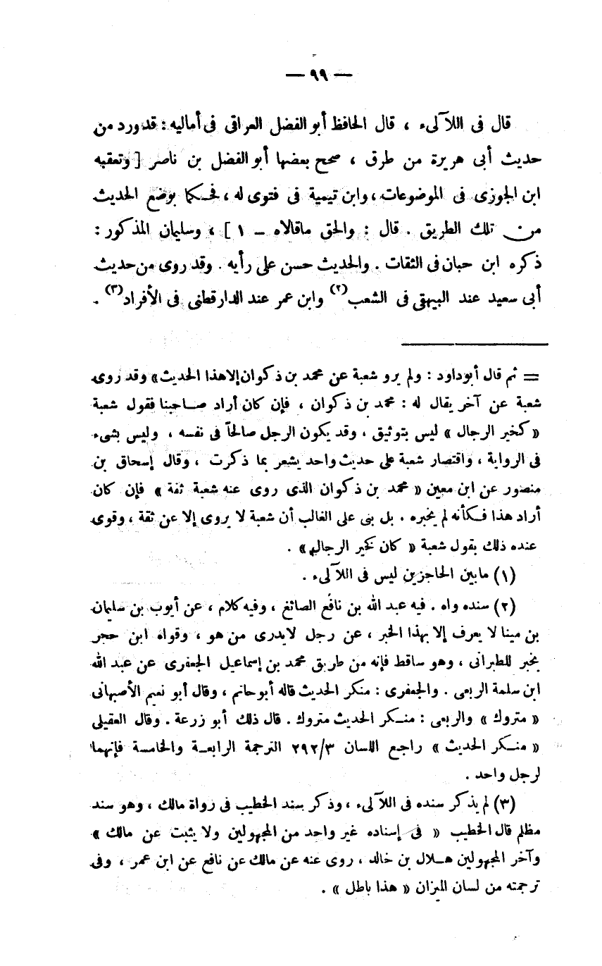 (3) لم يذكر سنده في اللآلىء، وذكر سند الخطيب في رواية مالك، وهو سند مظلم قال الخطيب (في إسناده غير واحد من المجهولين ولا يثبت عن مالك) وآخر المجهولين هلال بن خالد، روى عنه عن مالك عن نافع عن ابن عمر، وفي ترحمته من لسان الميزان (هذا باطل)