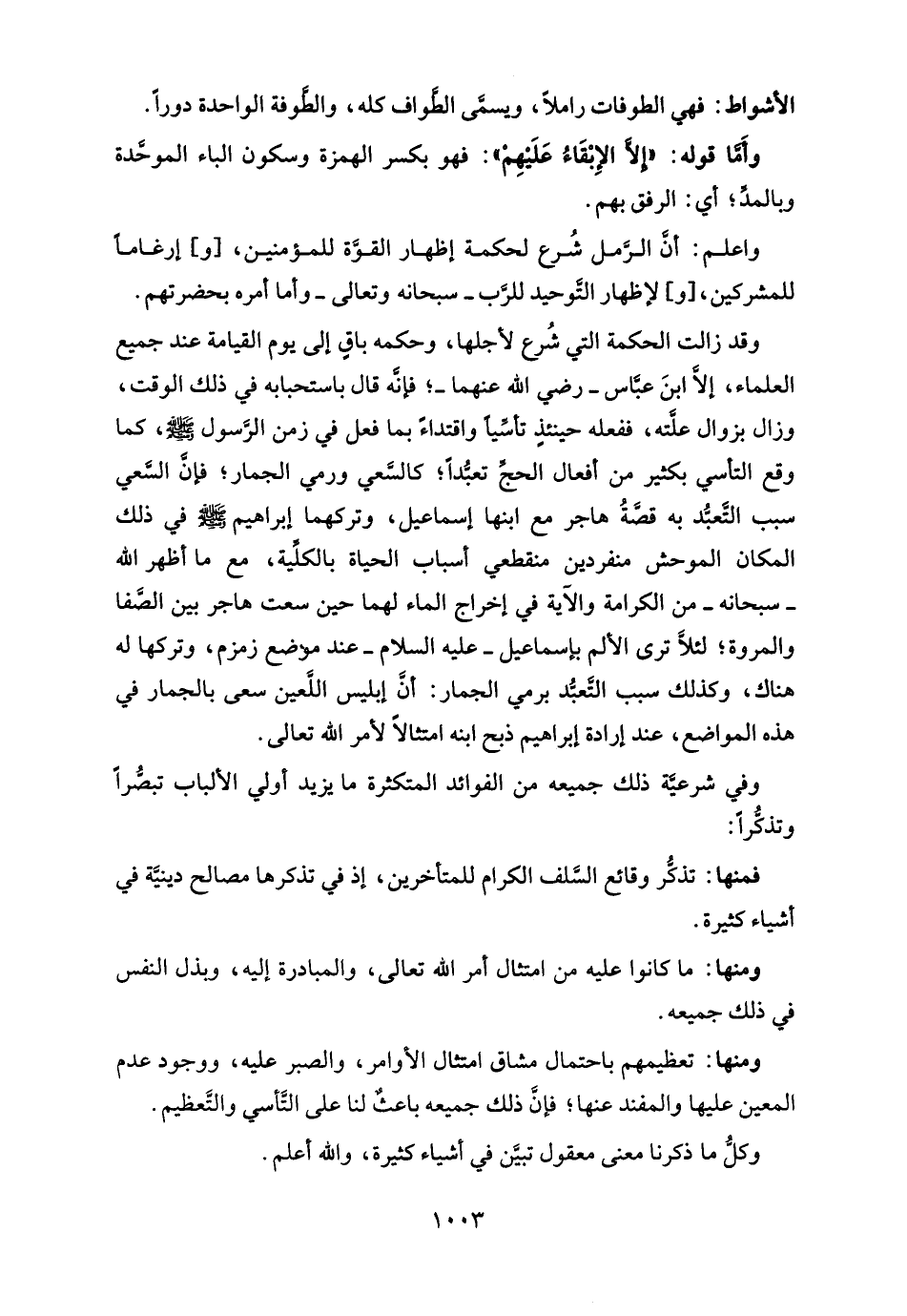 واعلم: أن الرَّمل شُرع لحكمة إظهار القوَّة للمؤمنين، [و] إرغامًا للمشركين، أو، لإظهار التوحيد للرَّب -سبحانه وتعالى- وأما أمره بحضرتهم.