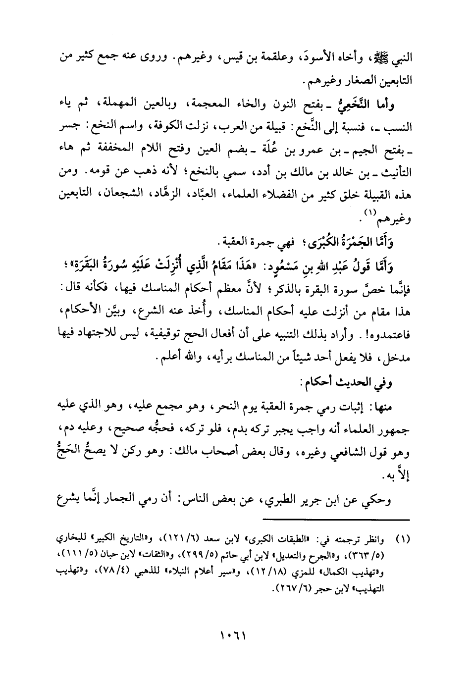 وأما النَّخَعِيُّ -بفتح النون والخاء المعجمة، وبالعين المهملة، ثم ياء النسب-، فنسبة إلى النَّخع: قبيلة من العرب، نزلت الكوفة، واسم النخع: جسر -بفتح الجيم- بن عمرو بن عُلَة -بضم العين وفتح اللام المخففة ثم هاء التأنيث- بن خالد بن مالك بن أدد، سمي بالنخع؛ لأنه ذهب عن قومه. ومن هذه القبيلة خلق كثير من الفضلاء العلماء، العبَّاد، الزهَّاد، الشجعان، التابعين وغيرهم (¬1).
