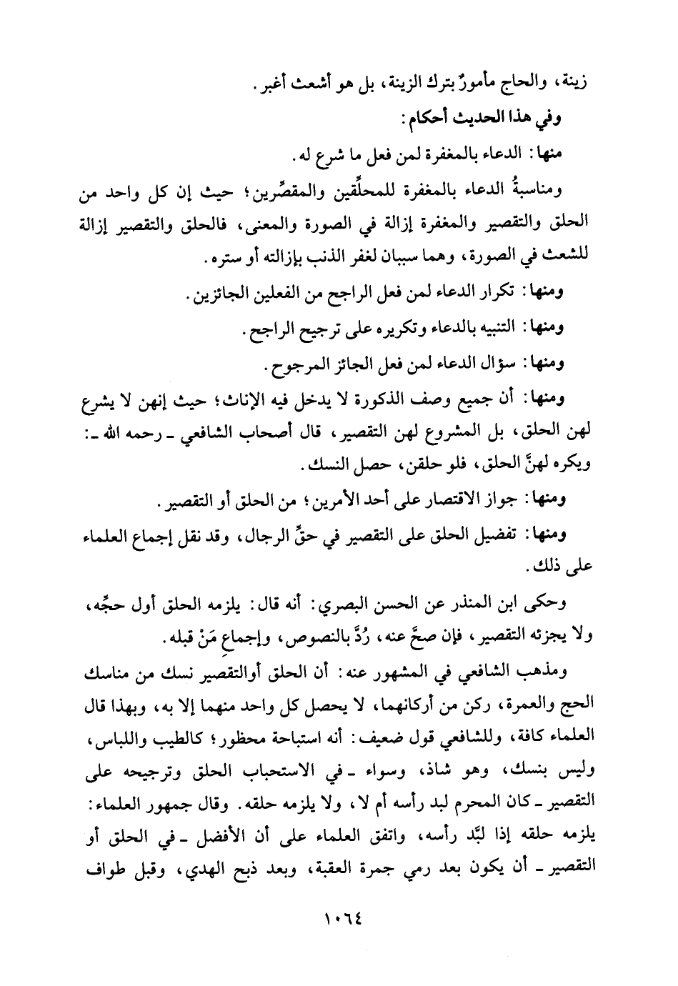 ومنها: تفضيل الحلق على التقصير في حقِّ الرجال، وقد نقل إجماع العلماء على ذلك.