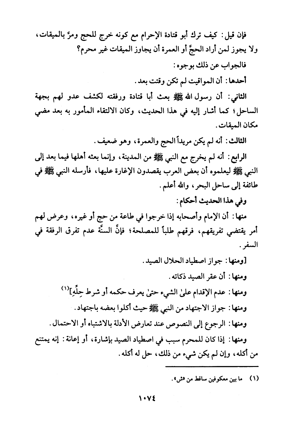 الثاني: أن رسول الله - صلى الله عليه وسلم - بعث أبا قتادة ورفقته لكشف عدو لهم بجهة الساحل؛ كما أشار إليه في هذا الحديث، وكان الالتقاء المأمور به بعد مضي مكان الميقات.
