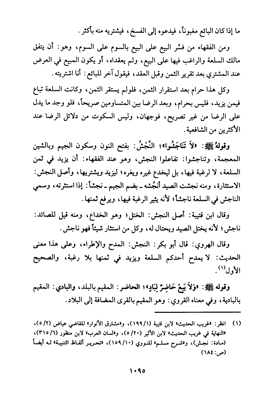 (¬1) انظر: "غريب الحديث" لابن قتيبة (1/ 199)، و"مشارق الأنوار" للقاضي عياض (2/ 5)، "النهاية في غريب الحديث" لابن الأثير (20/ 5)، و"لسان العرب" لابن منظور (6/ 315)، (مادة: نجش)، و "شرح مسلم" للنووي (10/ 159)، "تحرير ألفاظ التنبيه" له أيضًا (ص: 184).