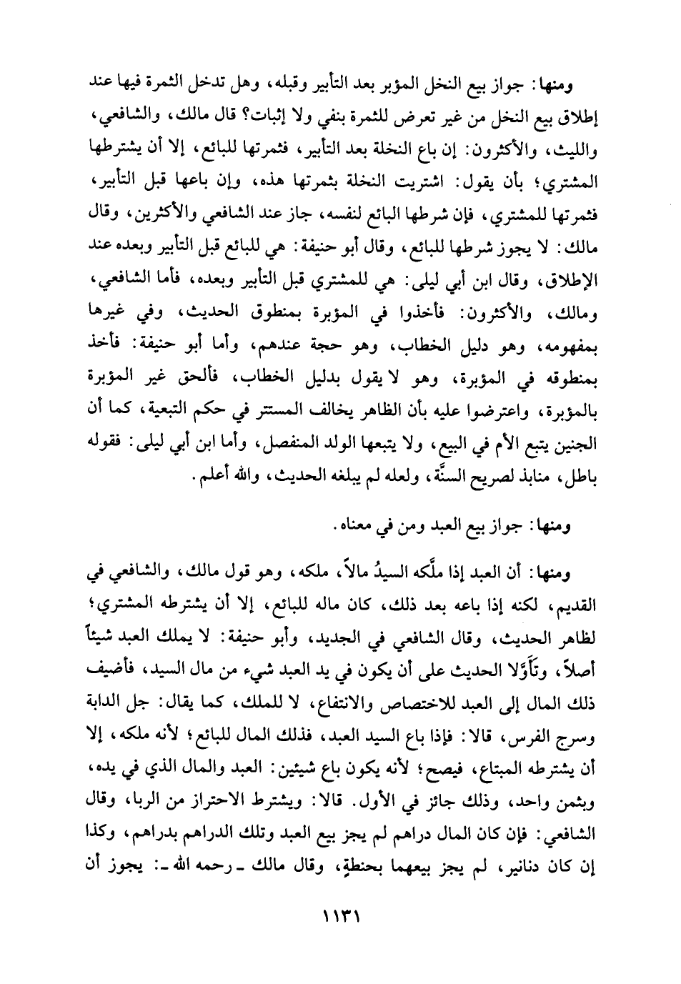 ومنها: أن العبد إذا ملَّكه السيدُ مالًا، ملكه، وهو قول مالك، والشافعي في القديم، لكنه إذا باعه بعد ذلك، كان ماله للبائع، إلا أن يشترطه المشتري؛ لظاهر الحديث، وقال الشافعي في الجديد، وأبو حنيفة: لا يملك العبد شيئًا أصلًا، وتأوَّلا الحديث على أن يكون في يد العبد شيء من مال السيد، فأضيف ذلك المال إلى العبد للاختصاص والانتفاع، لا للملك، كما يقال: جل الدابة وسرج الفرس، قالا: فإذا باع السيد العبد، فذلك المال للبائع؛ لأنه ملكه، إلا أن يشترطه المبتاع، فيصح؛ لأنه يكون باع شيئين: العبد والمال الذي في يده، وبثمن واحد، وذلك جائز في الأول. قالا: ويشترط الاحتراز من الربا، وقال الشافعي: فإن كان المال دراهم لم يجز بيع العبد وتلك الدراهم بدراهم، وكذا إن كان دنانير، لم يجز بيعهما بحنطةٍ، وقال مالك - رحمه الله -: يجوز أن