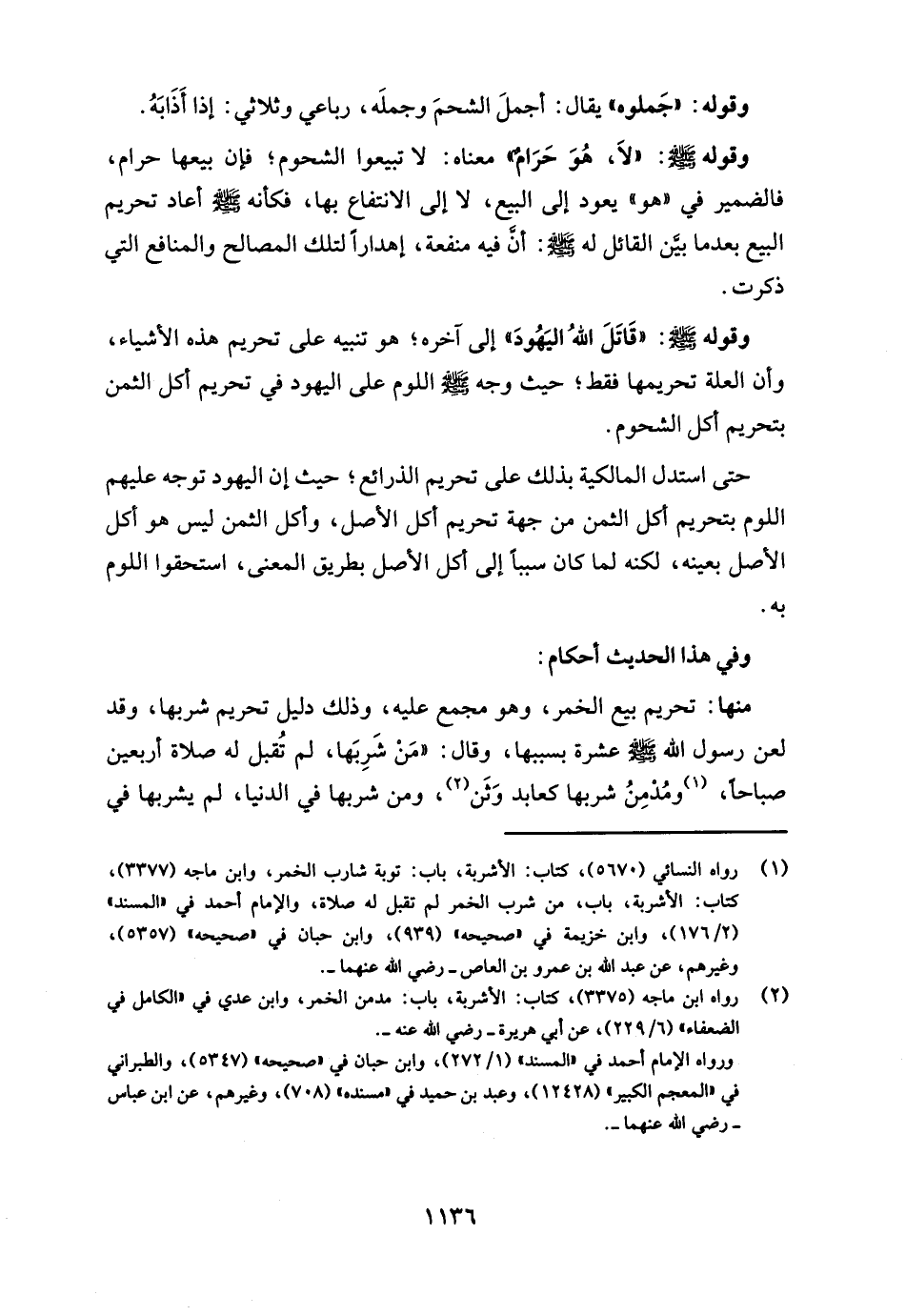 وقوله - صلى الله عليه وسلم -: "قَاتَلَ اللهُ اليَهُودَ" إلى آخره؛ هو تنبيه على تحريم هذه الأشياء، وأن العلة تحريمها فقط؛ حيث وجه - صلى الله عليه وسلم - اللوم على اليهود في تحريم أكل الثمن بتحريم أكل الشحوم.