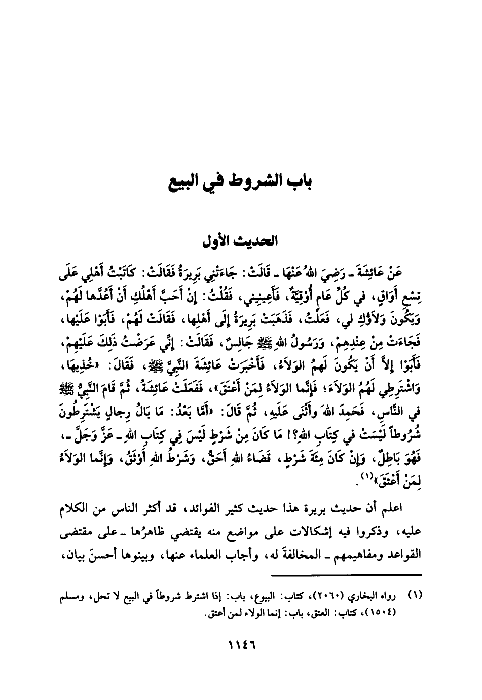 (¬1) رواه البخاري (2060)، كتاب: البيوع، باب: إذا اشترط شروطًا في البيع لا تحل، ومسلم (1504)، كتاب: العتق، باب: إنما الولاه لمن أعتق.