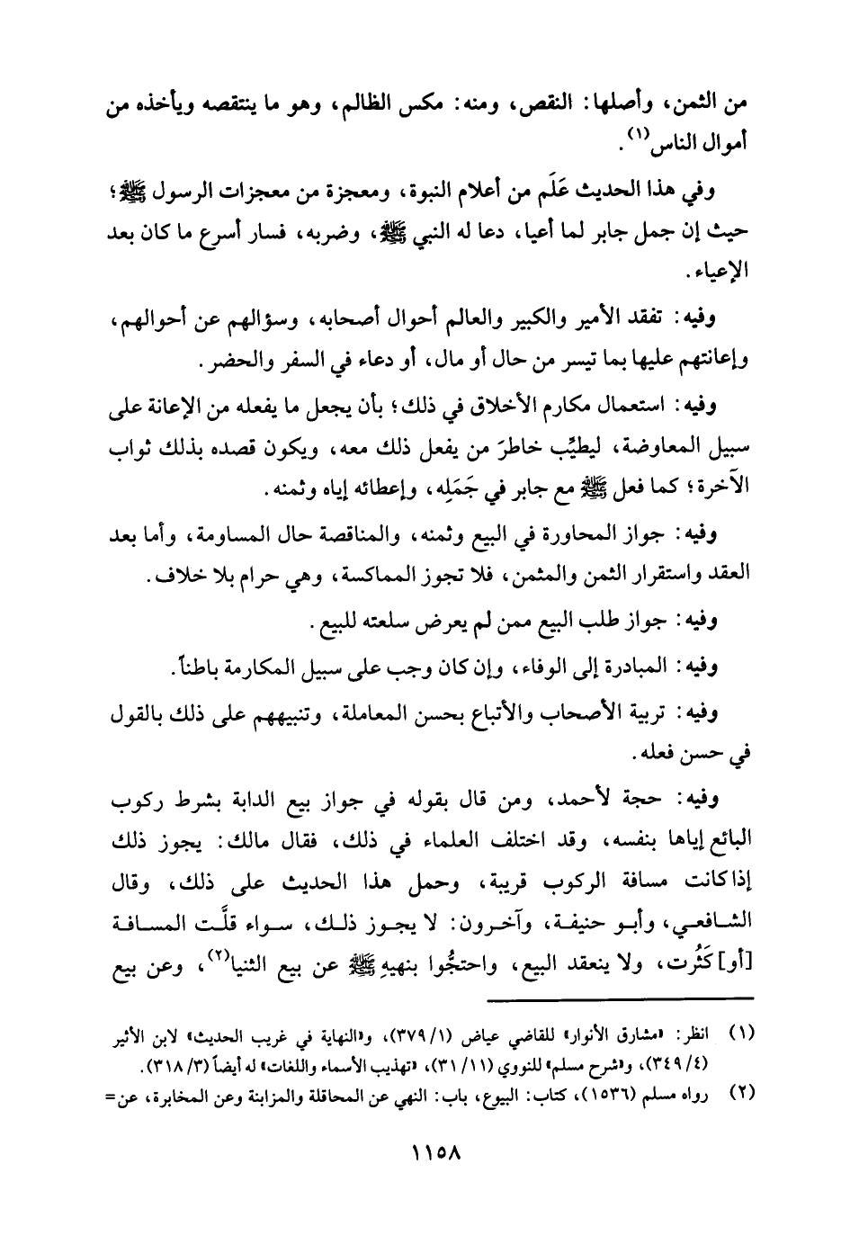 وفيه: جواز المحاورة في البيع وثمنه، والمناقصة حال المساومة، وأما بعد العقد واستقرار الثمن والمثمن، فلا تجوز المماكسة، وهي حرام بلا خلاف.