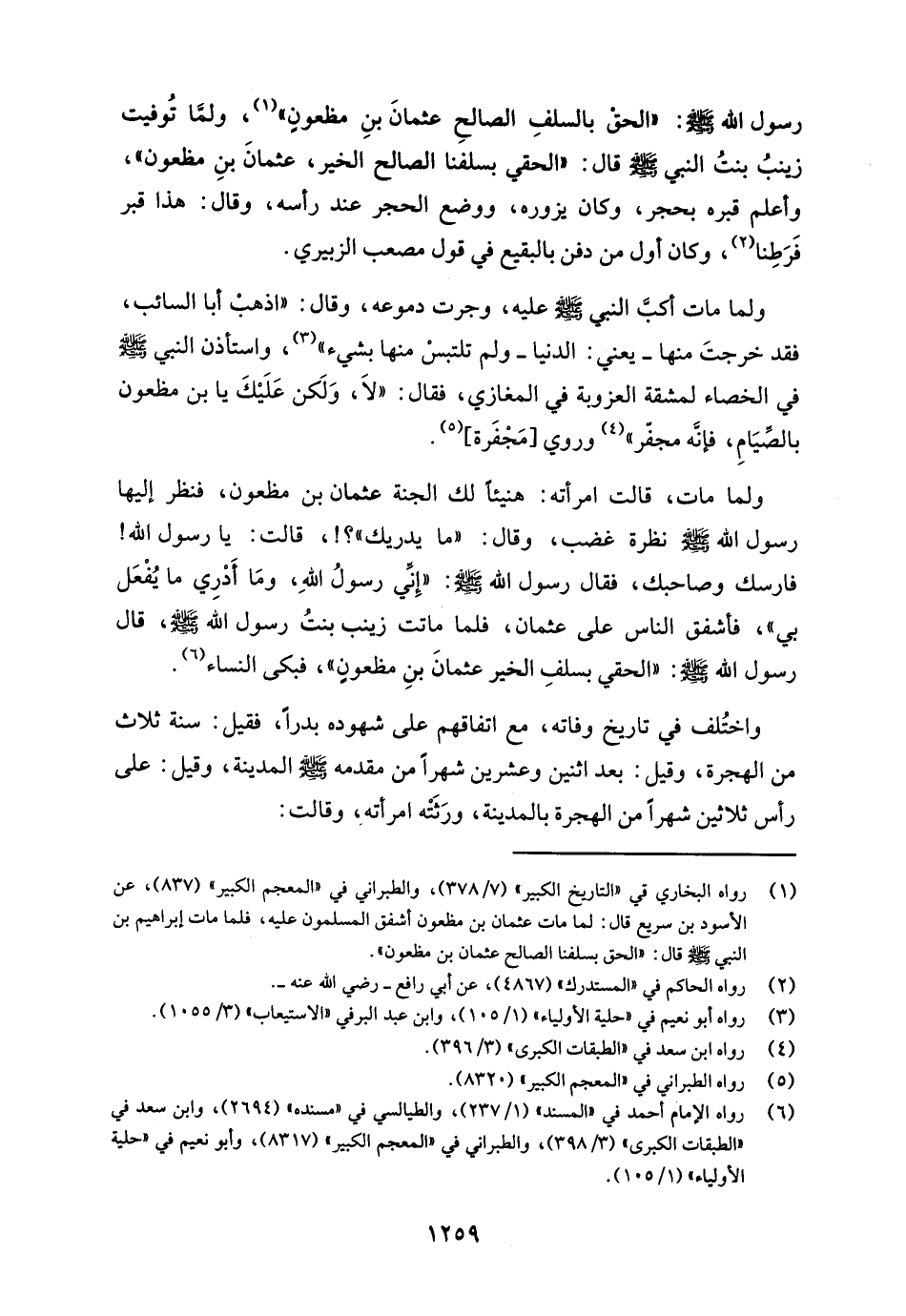 (¬1) رواه البخاري في "التاريخ الكبير" (7/ 378)، والطبراني في "المعجم الكبير" (837)، عن الأسود بن سريع قال: لما مات عثمان بن مظعون أشفق المسلمون عليه، فلما مات إبراهيم بن النبي - صلى الله عليه وسلم - قال: "الحق بسلفنا الصالح عثمان بن مظعون".