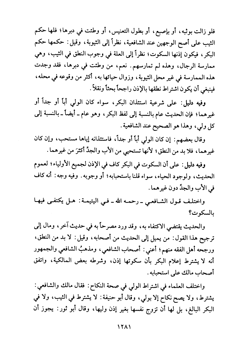 وفيه دليل: على شرعية استئذان البكر، سواء كان الولي أبًا أو جدًّا أو غيرهما؛ فإن الحديث عام بالنسبة إلى لفظ البكر، وهو عام -أيضًا- بالنسبة إلى كل ولي، وهذا هو الصحيح عند الشافعية.