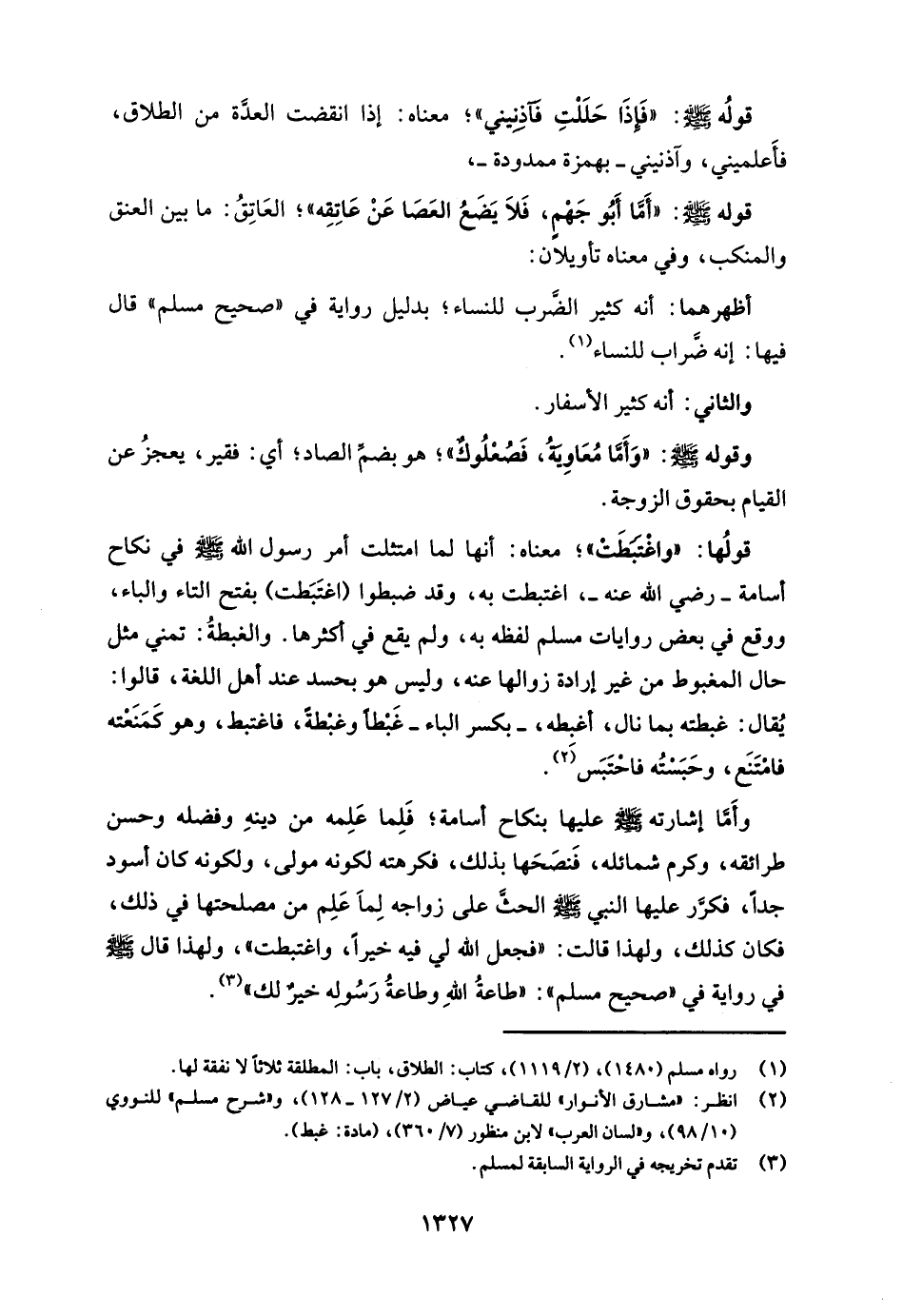 قولُها: "واغْتبَطَتْ"؛ معناه: أنها لما امتثلت أمر رسول الله - صلى الله عليه وسلم - في نكاح أسامة - رضي الله عنه -، اغتبطت به، وقد ضبطوا (اغتَبَطت) بفتح التاء والباء، ووقع في بعض روايات مسلم لفظه به، ولم يقع في أكثرها. والغبطةُ: تمني مثل حال المغبوط من غير إرادة زوالها عنه، وليس هو بحسد عند أهل اللغة، قالوا: يُقال: غبطته بما نال، أغبِطه، -بكسر الباء- غَبْطًا وغبْطةً، فاغتبط، وهو كَمَنَعْته فامتَنَع، وحَبَسْتُه فاحتَبَس (¬2).