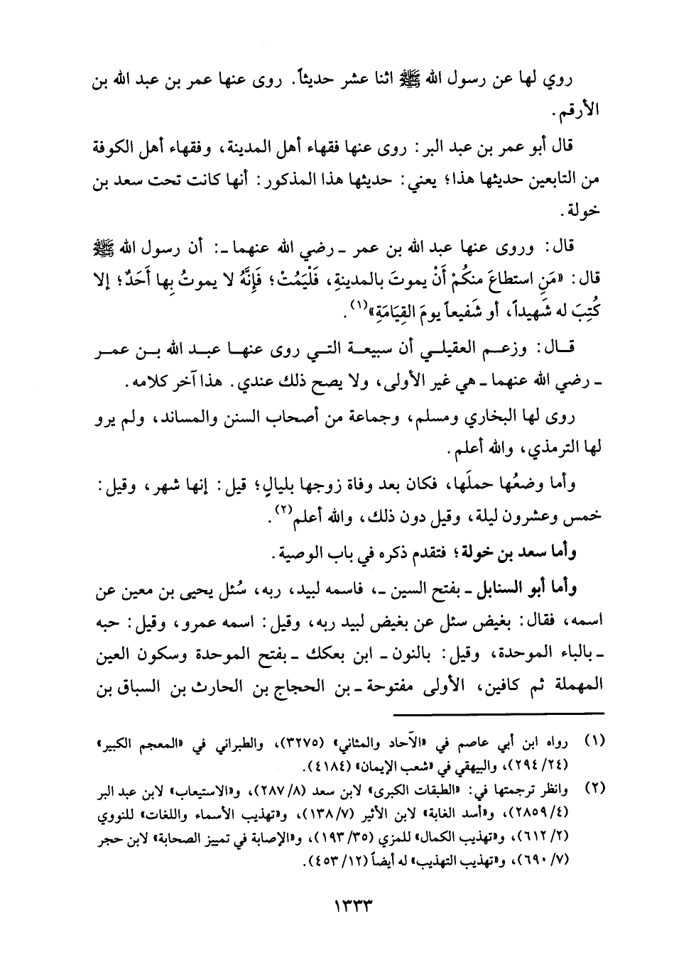 قال: وزعم العقيلي أن سبيعة التي روى عنها عبد الله بن عمر - رضي الله عنهما - هي غير الأولى، ولا يصح ذلك عندي. هذا آخر كلامه.