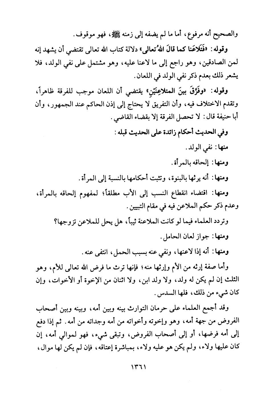وقوله: "فَتَلاعَنا كما قالَ اللهُ تعالى" دلالة كتاب الله تعالى تقتضي أن يشهد إنه لمن الصادقين، وهو راجع إلى ما لاعنا عليه، وهو مشتمل على نفي الولد، فلا يشعر ذلك بعدم ذكر نفي الولد في اللعان.
