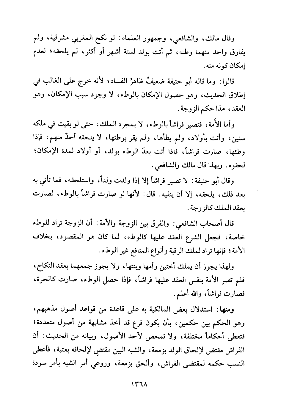 وأما الأَمة، فتصير فراشًا بالوطء، لا بمجرد الملك، حتى لو بقيت في ملكه سنين، وأتت باولاد، ولم يطأها، ولم يقر بوطئها، لا يلحقه أحدٌ منهم، فإذا وطئها، صارت فراشًا، فإذا أتت بعدَ الوطء بولد، أو أولاد لمدة الإمكان؛ لحقوه. وبهذا قال مالك والشافعي.
