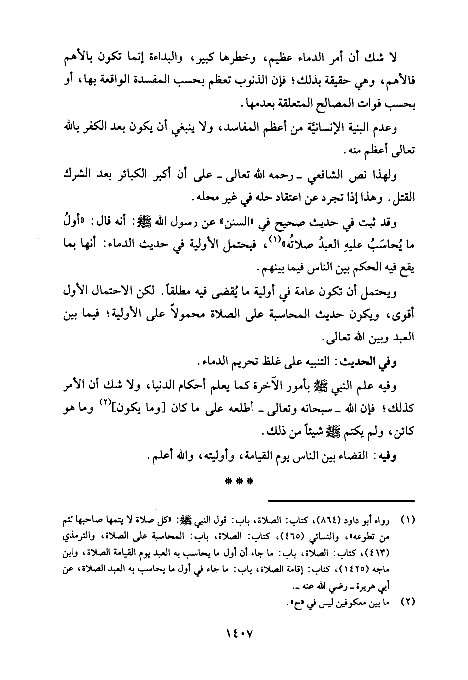 وقد ثبت في حديث صحيح في "السنن" عن رسول الله - صلى الله عليه وسلم -: أنه قال: "أولُ ما يُحاسَبُ عليهِ العبدُ صلاتُه" (¬1)، فيحتمل الأولية في حديث الدماء: أنها بما يقع فيه الحكم بين الناس فيما بينهم.