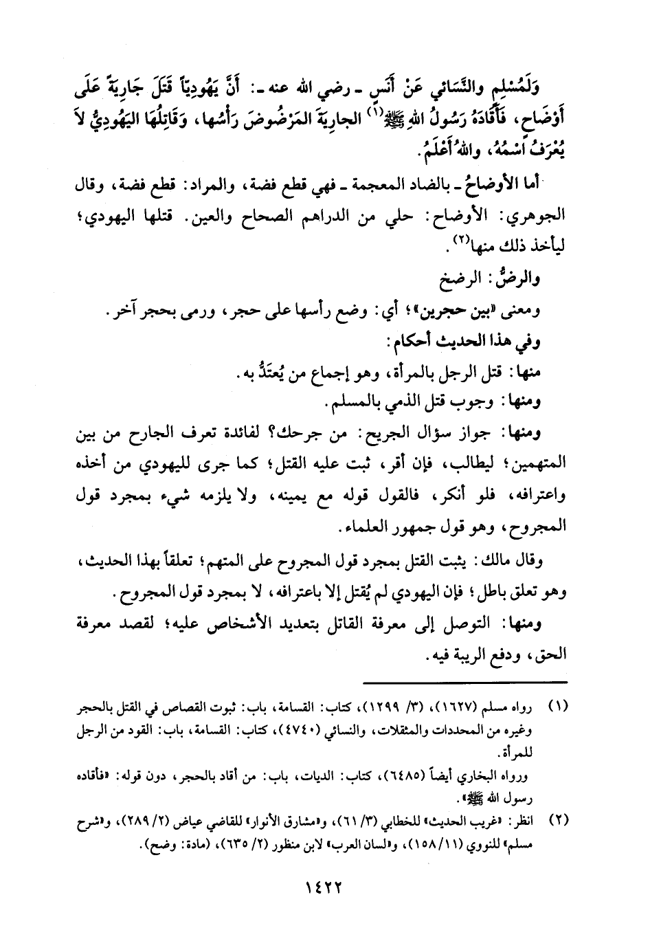 (¬1) رواه مسلم (1627)، (3/ 1299)، كتاب: القسامة، باب: ثبوت القصاص في القتل بالحجر وغيره من المحددات والمثقلات، والنسائي (4740)، كتاب: القسامة، باب: القود من الرجل للمرأة.