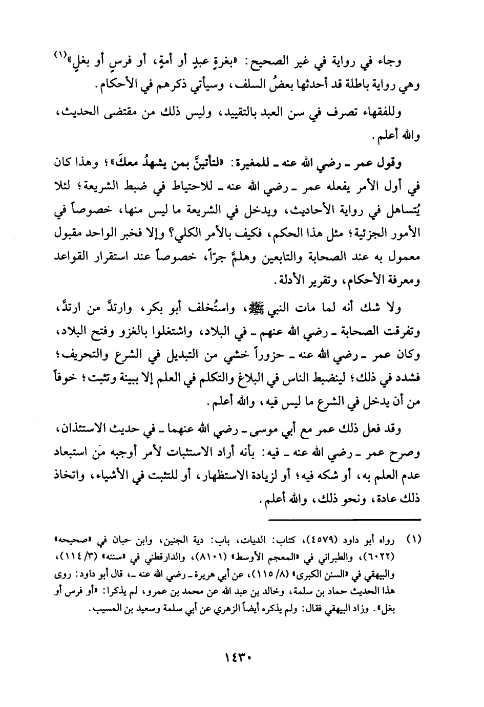 (¬1) رواه أبو داود (4579)، كتاب: الديات، باب: دية الجنين، وابن حبان في "صحيحه" (6022)، والطبراني في "المعجم الأوسط" (8101)، والدارقطني في "سننه" (3/ 114)، والبيهقي في "السنن الكبرى" (8/ 115)، عن أبي هريرة - رضي الله عنه -، قال أبو داود: روى هذا الحديث حماد بن سلمة، وخالد بن عبد الله عن محمَّد بن عمرو, لم يذكرا: "أو فرس أو بغل". وزاد البيهقي فقال: ولم يذكره أيضًا الزهري عن أبي سلمة وسعيد بن المسيب.