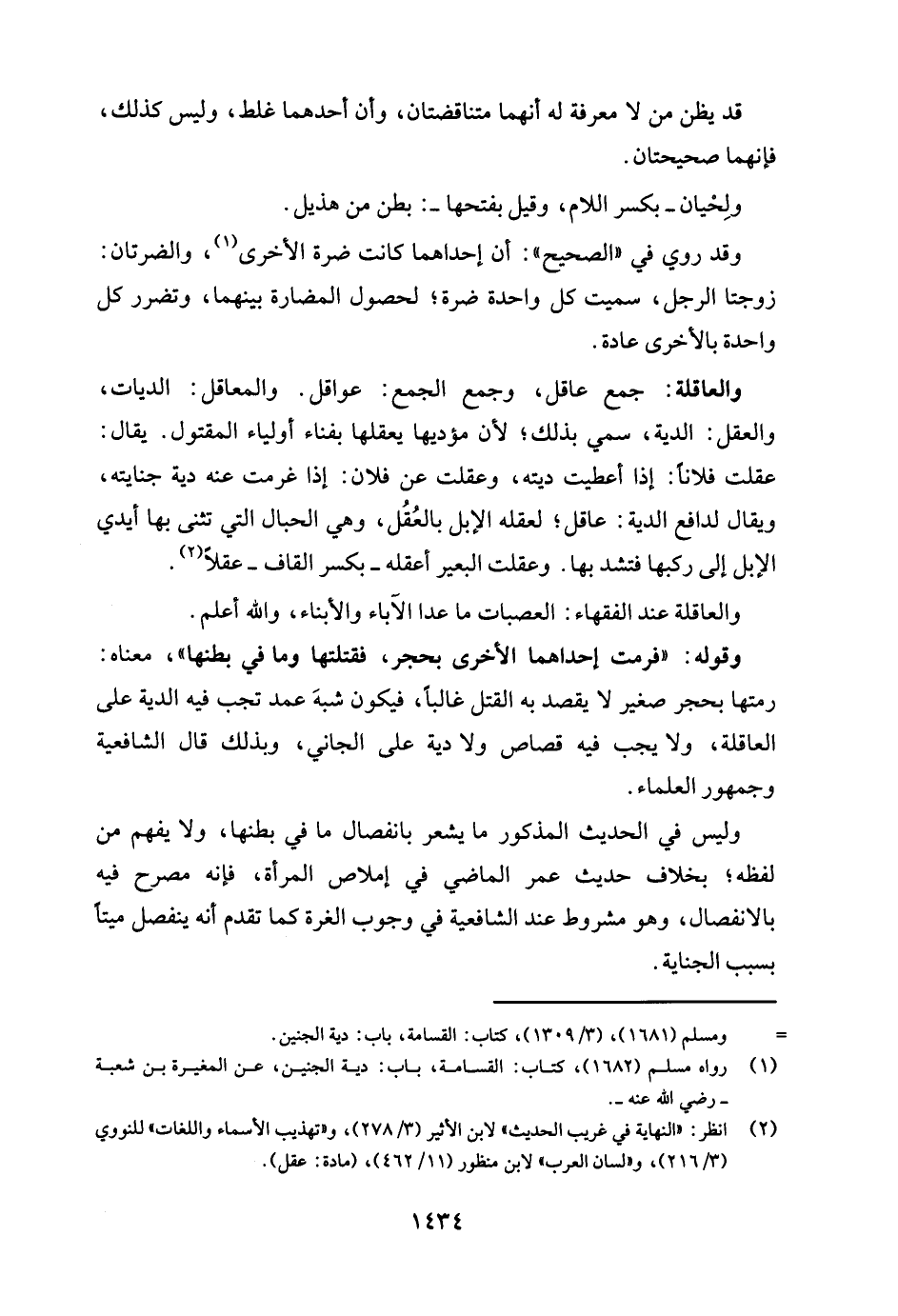 (¬2) انظر: "النهاية في غريب الحديث" لابن الأثير (3/ 278)، و"تهذيب الأسماء واللغات" للنووي (3/ 216)، و"لسان العرب" لابن منظور (11/ 462)، (مادة: عقل).