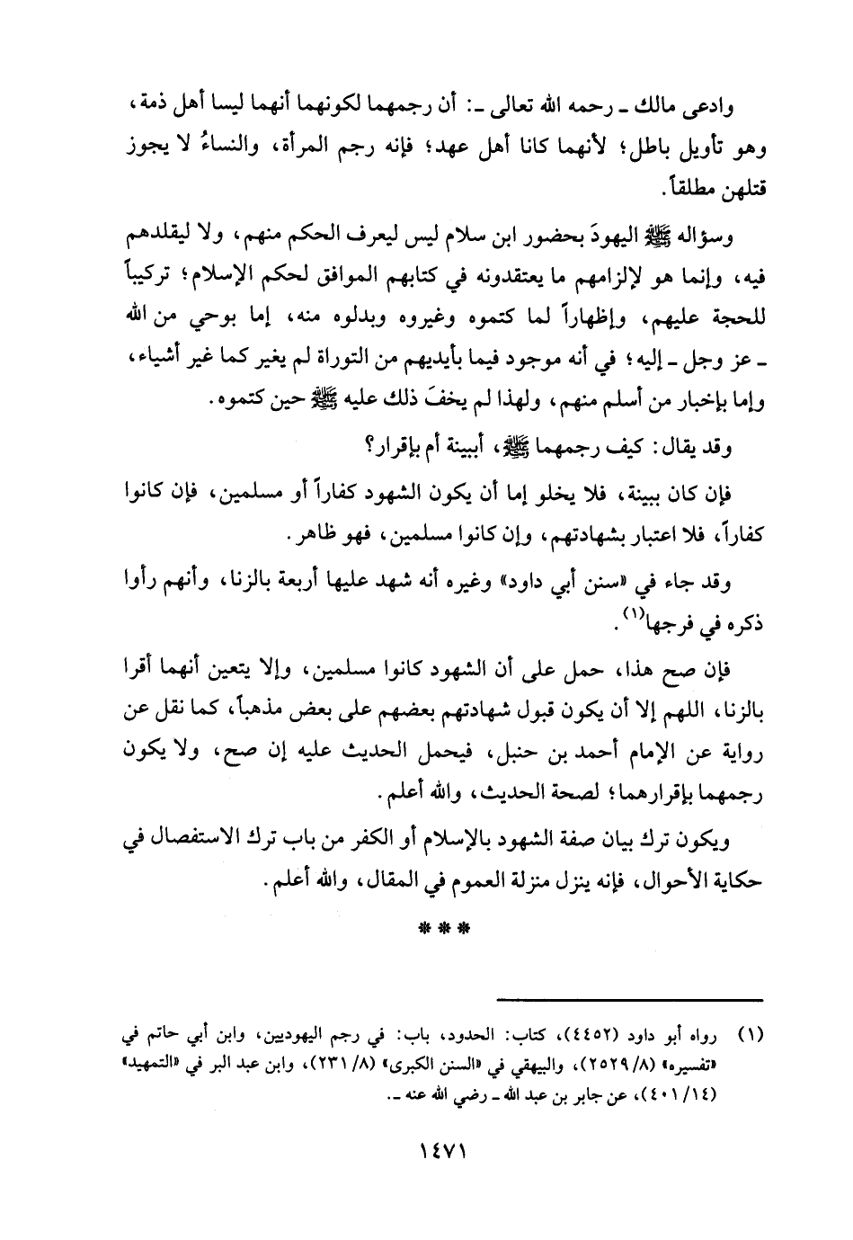 (¬1) رواه أبو داود (4452)، كتاب: الحدود، باب: في رجم اليهوديين، وابن أبي حاتم في "تفسيره" (8/ 2529)، والبيهقي في "السنن الكبرى" (8/ 231)، وابن عبد البر في "التمهيد" (14/ 401)، عن جابر بن عبد الله - رضي الله عنه -.