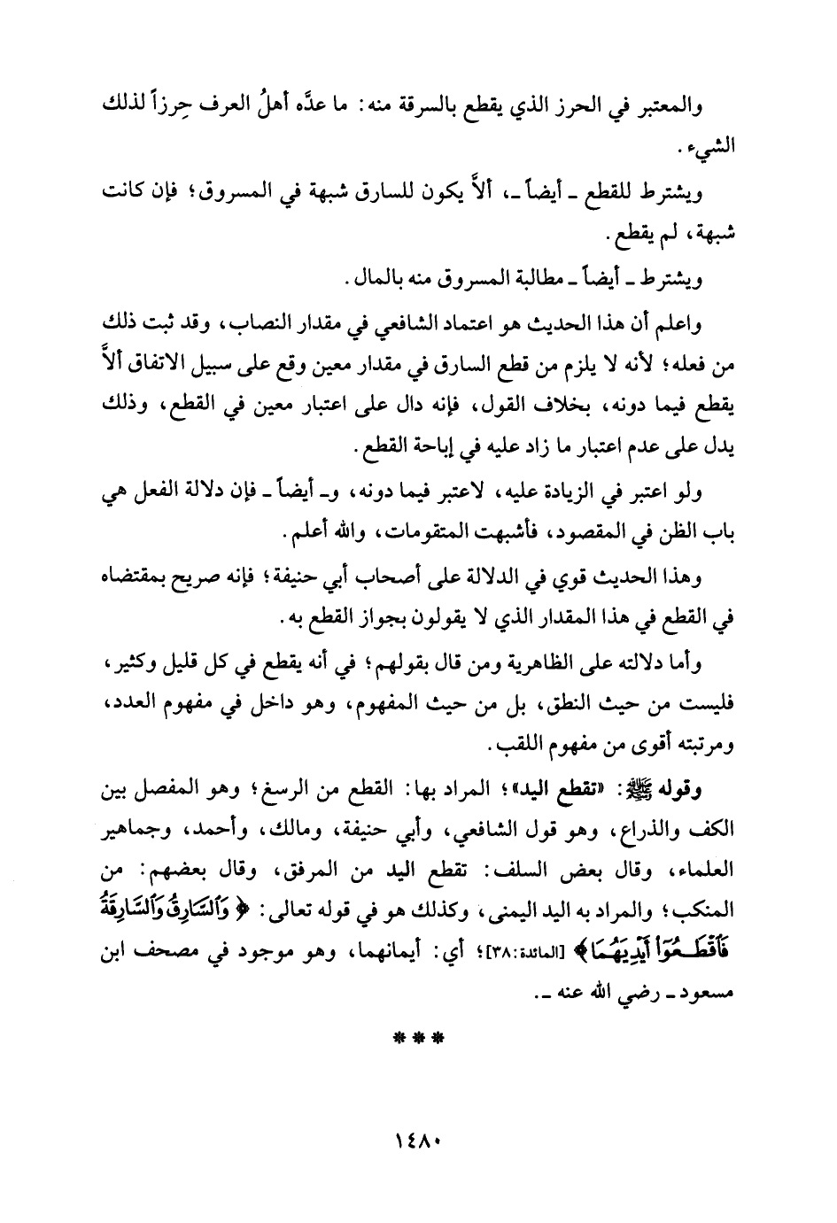 ويشترط للقطع -أيضًا-، ألَّا يكون للسارق شبهة في المسروق؛ فإن كانت شبهة، لم يقطع.