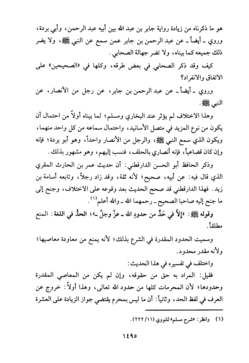 وقوله - صلى الله عليه وسلم -: "إلَّا في حَدٍّ من حدودِ الله -عزَّ وجل-"؛ الحدُّ في اللغة: المنع مطلقًا.