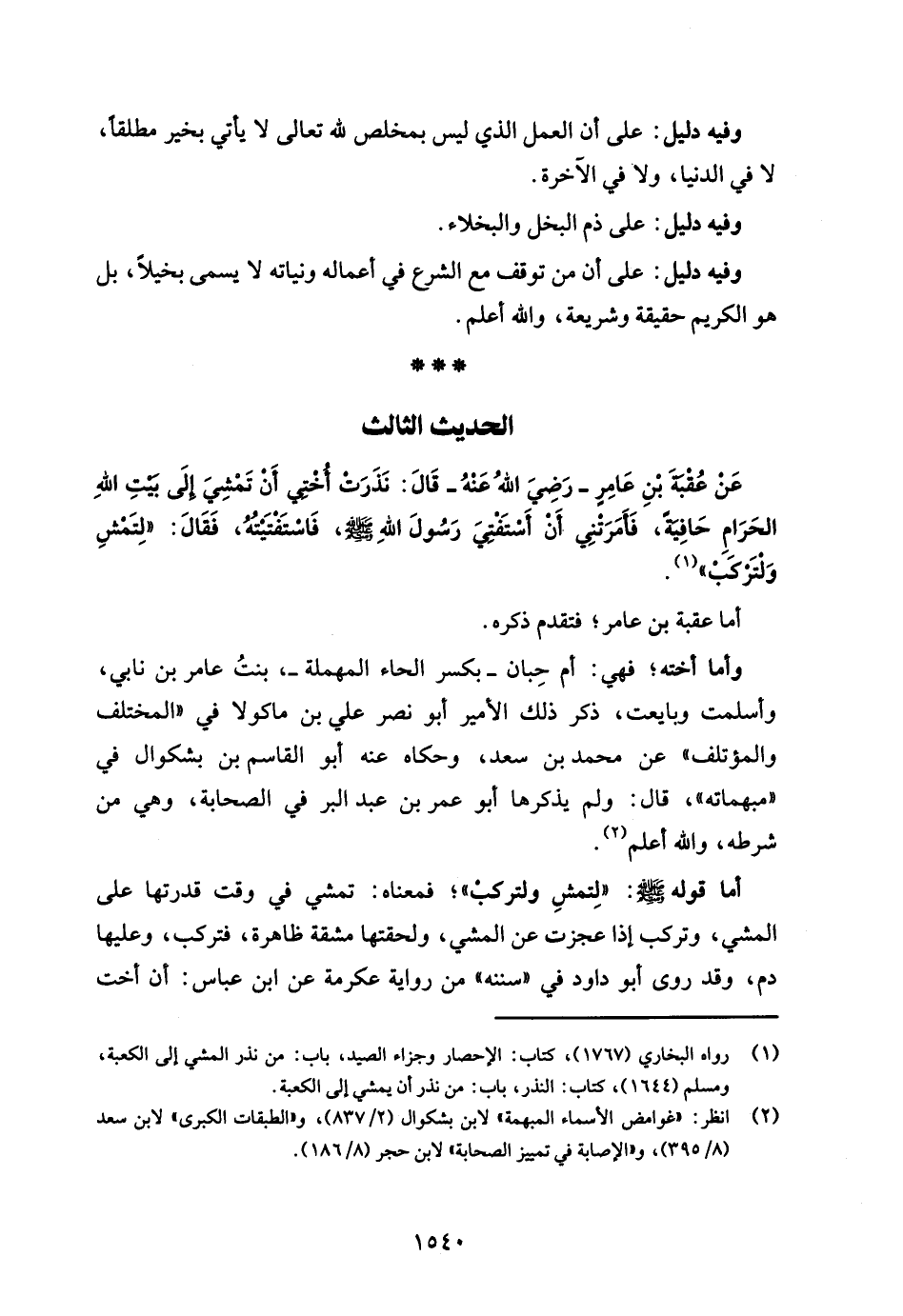 (¬1) رواه البُخَارِيّ (1767)، كتاب: الإحصار وجزاء الصيد، باب: من نذر المشي إلى الكعبة، ومسلم (1644)، كتاب: النذر، باب: من نذر أن يمشي إلى الكعبة.