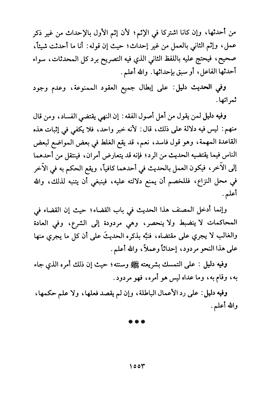 من أحدثها، وإن كانا اشتركا في الإثم؛ لأن إثم الأول بالإحداث من غير ذكر عمل، وإثم الثاني بالعمل من غير إحداث؛ حيث إن قوله: أنا ما أحدثت شيئًا، صحيح، فيحتج عليه باللفظ الثاني الذي فيه التصريح برد كل المحدثات، سواء أحدثها الفاعل، أو سبق بإحداثها. والله أعلم.