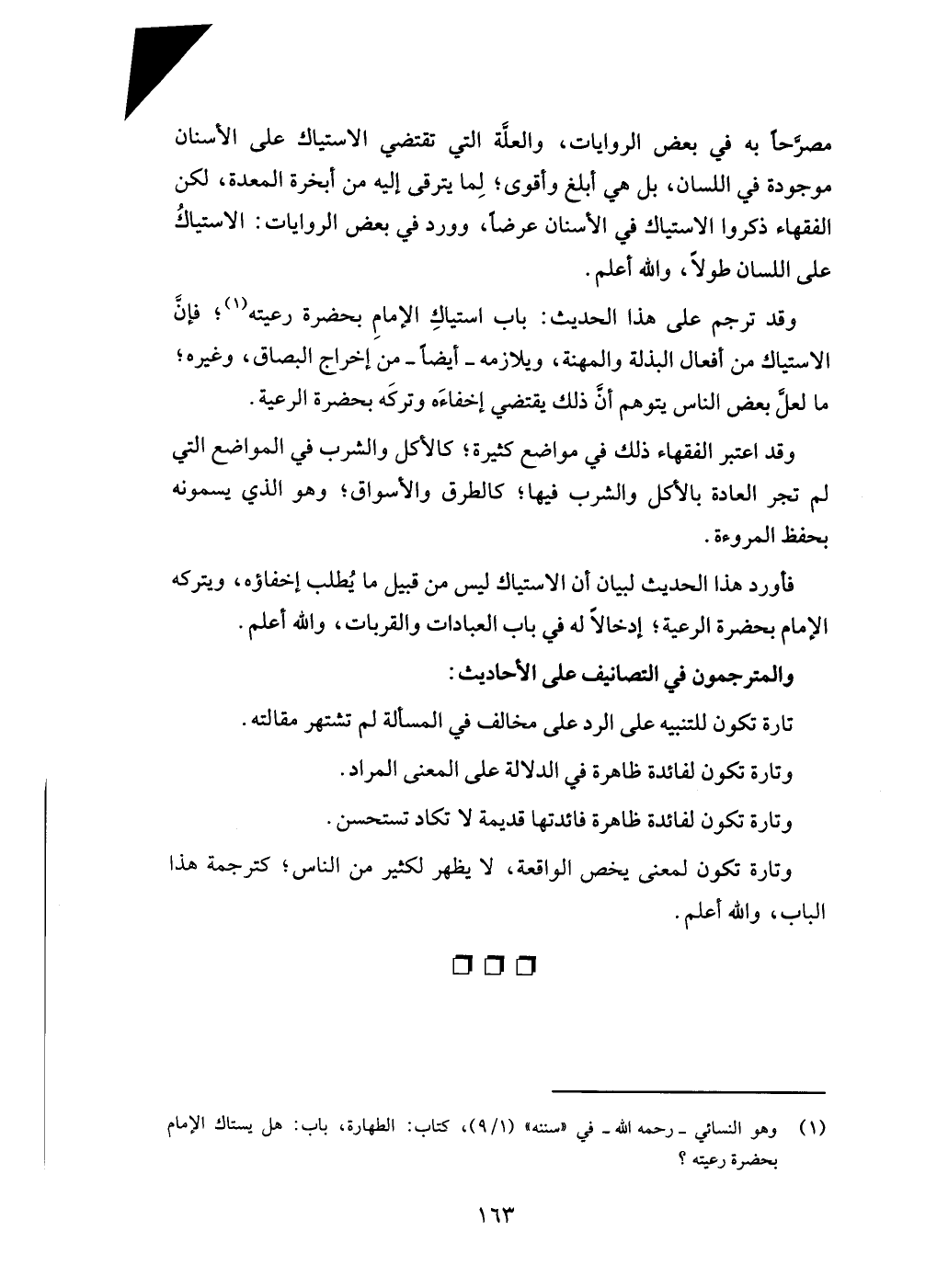 (¬1) وهو النسائي -رحمه الله- في "سننه" (1/ 9)، كتاب: الطهارة، باب: هل يستاك الإمام بحضرة رعيته؟