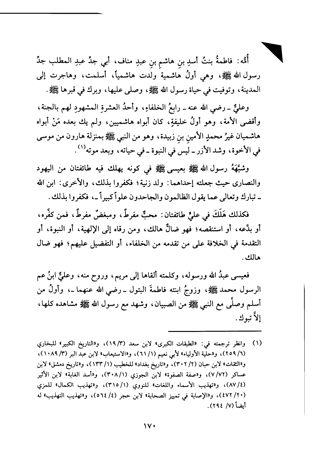 فعيسى عبدُ الله ورسوله، وكلمته ألقاها إلى مريم، وروح منه، وعليٌّ ابنُ عم الرسول محمد - صلى الله عليه وسلم -، وزوجُ ابنته فاطمةَ البتول - رضي الله عنهما -، وأولُ من أسلم وصلَّى مع النبي - صلى الله عليه وسلم - من الصبيان، وشهد مع رسول الله - صلى الله عليه وسلم - مشاهده كلها، إلَّا تبوك.