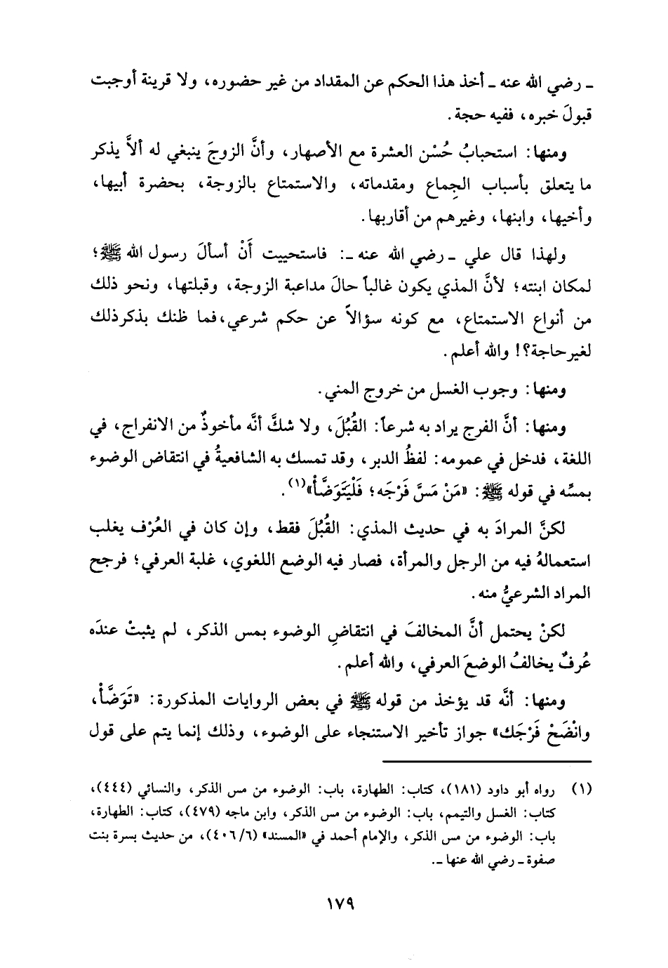 (¬1) رواه أبو داود (181)، كتاب: الطهارة، باب: الوضوء من مس الذكر، والنسائي (444)، كتاب: الغسل والتيمم، باب: الوضوء من مس الذكر، وابن ماجه (479)، كتاب: الطهارة، باب: الوضوء من مس الذكر، والامام أحمد في "المسند" (6/ 406)، من حديث بسرة بنت صفوة - رضي الله عنها -.