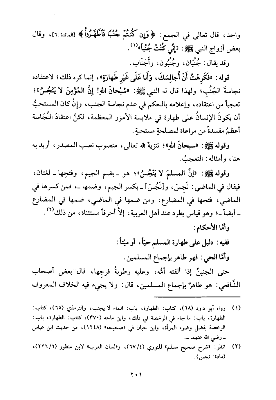 (¬2) انظر: "شرح صحيح مسلم" للنووي (4/ 67)، و"لسان العرب" لابن منظور (6/ 226)، (مادة: نجس).