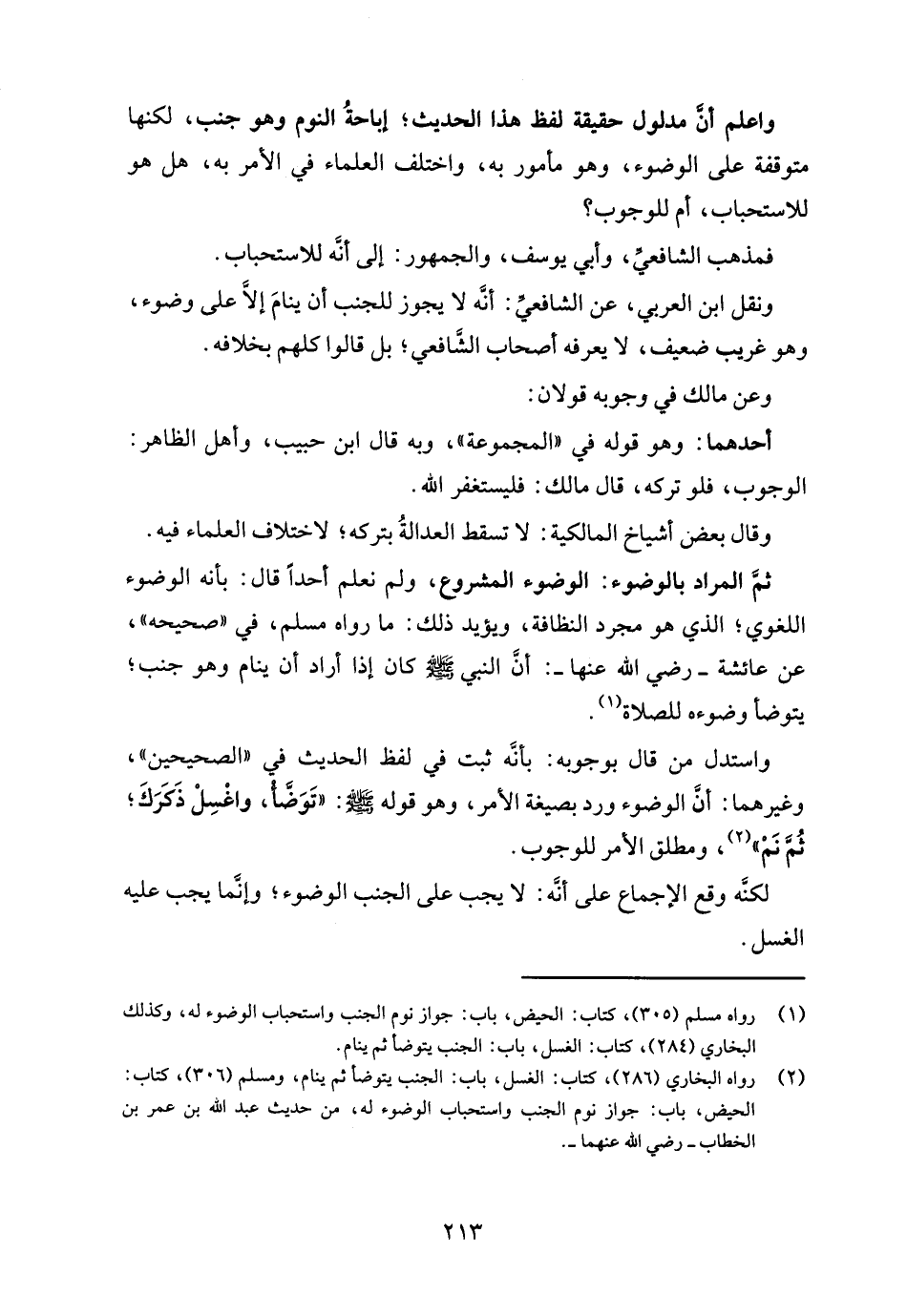 (¬2) رواه البخاري (286)، كتاب: الغسل، باب: الجنب يتوضأ ثم ينام، ومسلم (306)، كتاب: الحيض، باب: جواز نوم الجنب واستحباب الوضوء له، من حديث عبد الله بن عمر بن الخطاب - رضي الله عنهما -.