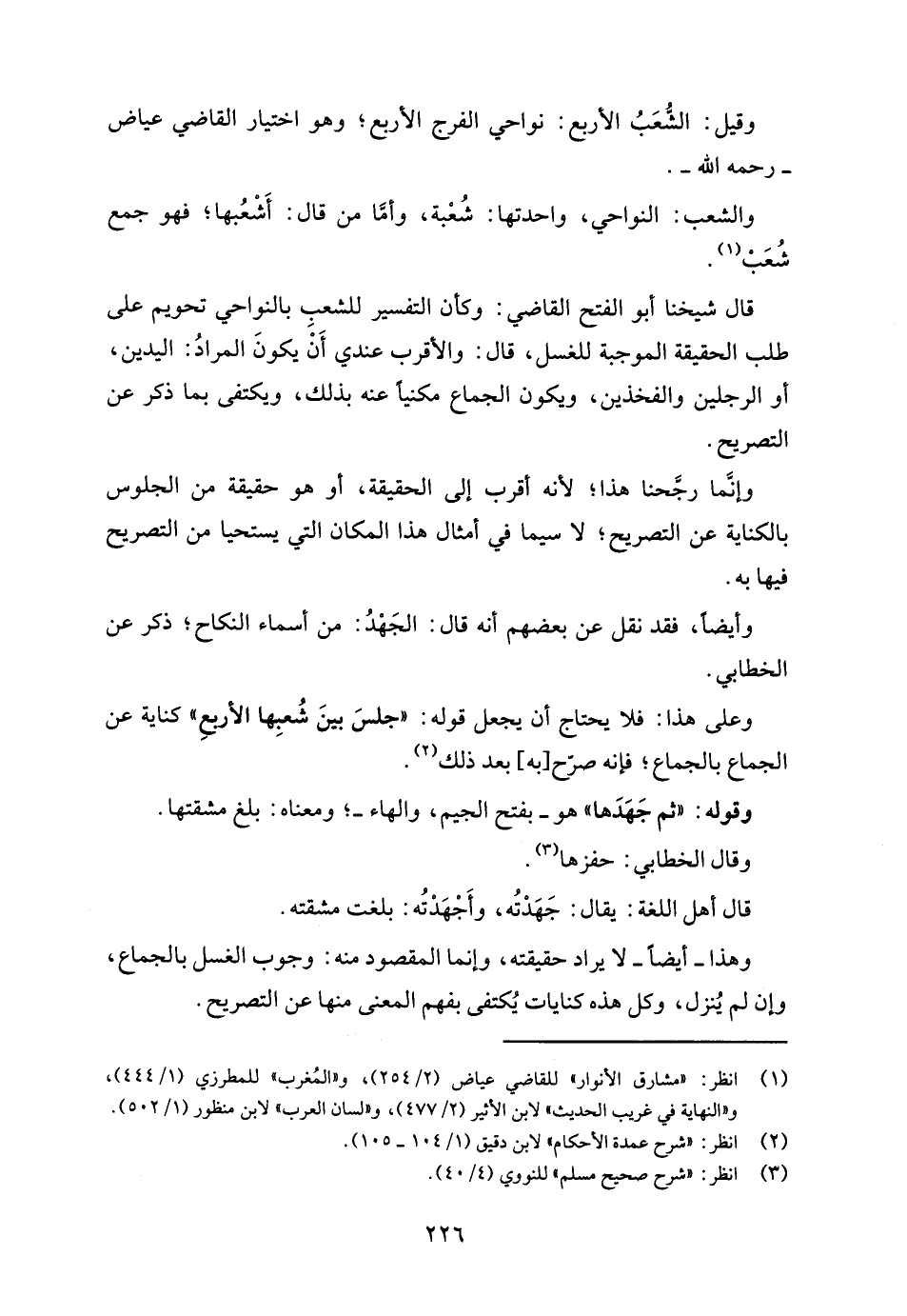 وقيل: الشُّعَبُ الأربع: نواحي الفرج الأربع؛ وهو اختيار القاضي عياض - رحمه الله -.