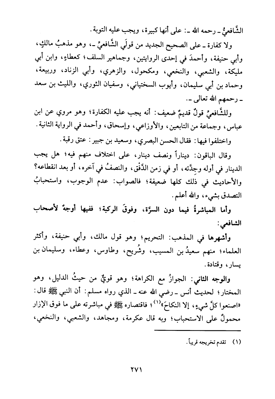ولا كفارة -على الصحيح الجديد من قولَي الشَّافعيِّ-، وهو مذهبُ مالكٍ، وأبي حنيفة، وأحمدَ في إحدى الروايتين، وجماهير السلف؛ كعطاءٍ، وابن أبي مليكة، والشعبي، والنخعي، ومكحول، والزهري، وأبي الزناد، وربيعة، وحماد بن أبي سليمان، وأيوب السختياني، وسفيان الثوري، والليث بن سعد -رحمهم الله تعالى-.