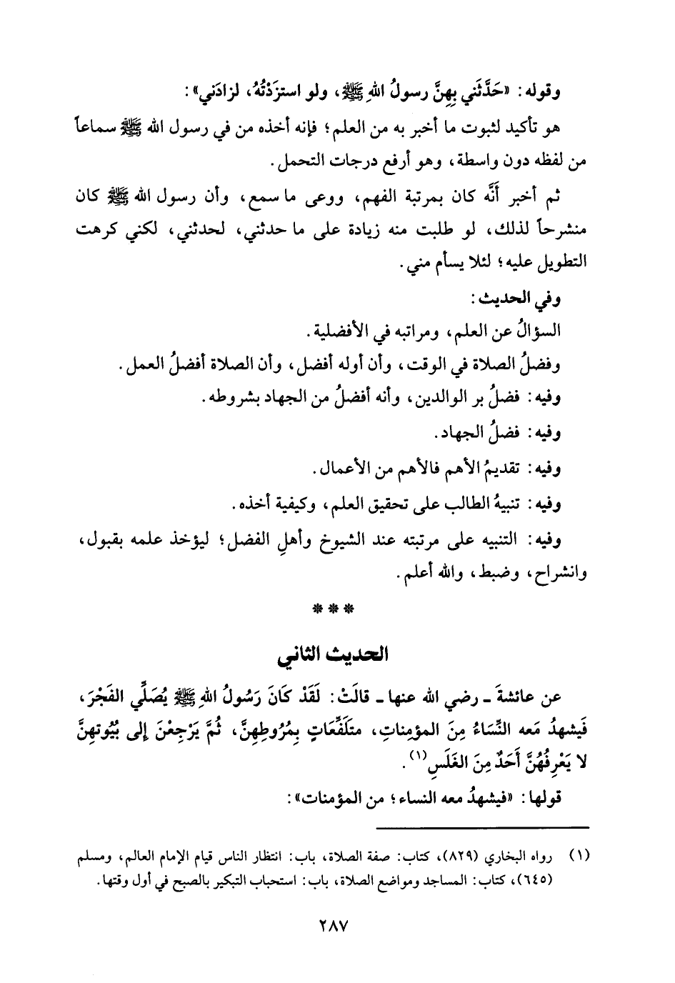 ثم أخبر أَنَّه كان بمرتبة الفهم، ووعى ما سمع، وأن رسول الله - صلى الله عليه وسلم - كان منشرحًا لذلك، لو طلبت منه زيادة على ما حدثني، لحدثني، لكني كرهت التطويل عليه؛ لئلا يسأم مني.