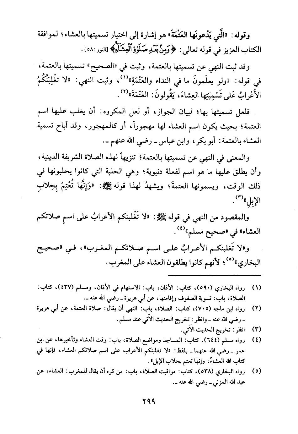(¬4) رواه مسلم (644)، كتاب: المساجد ومواضع الصلاة، باب: وقت العشاء وتأخيرها، عن ابن عمر - رضي الله عنهما - بلفظ: "لا تغلبنكم الأعراب على اسم صلاتكم العشاء، فإنها في كتاب الله العشاءُ، وإنها تعتم بحلاب الإبل".