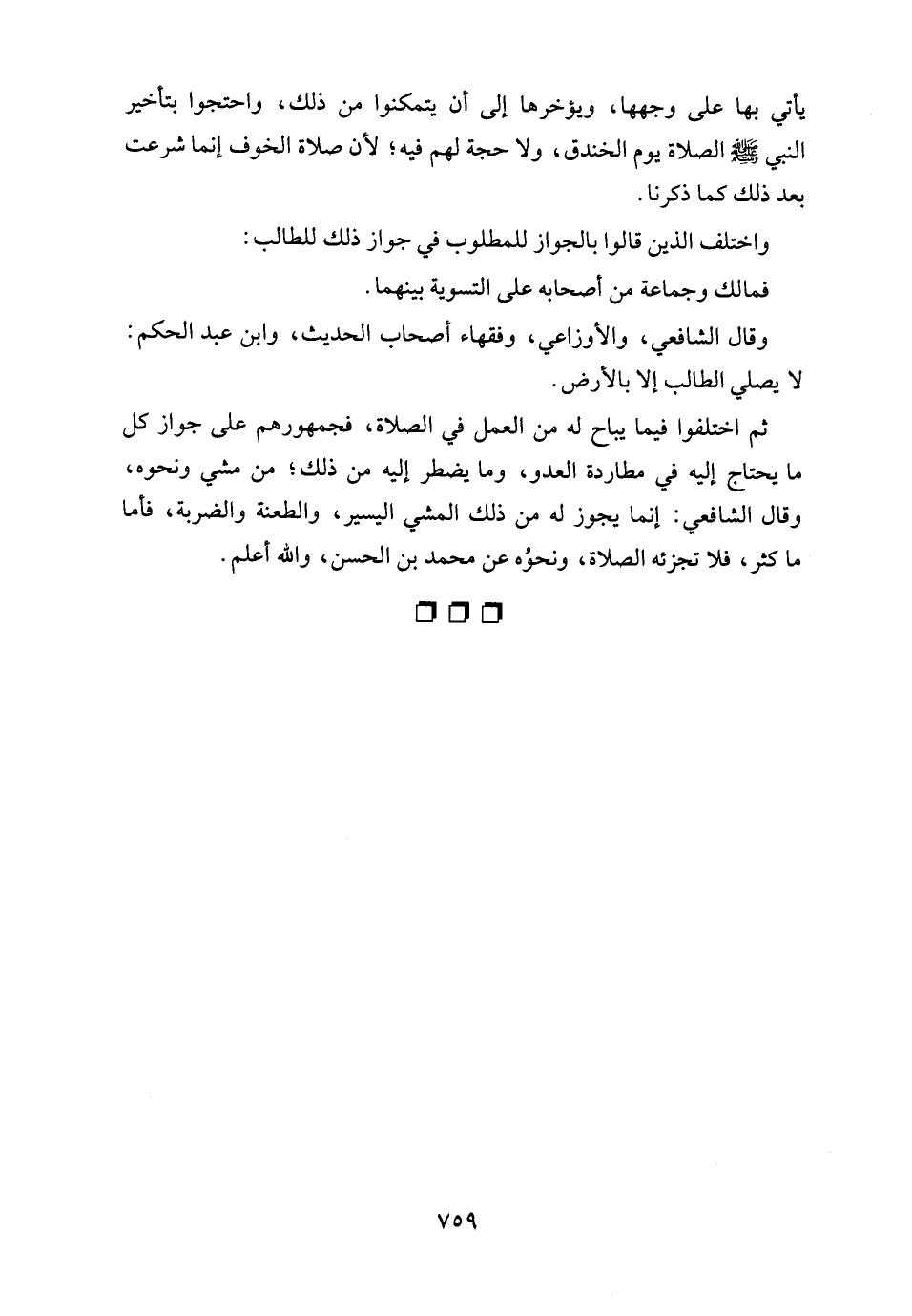 وقال الشافعي، والأوزاعي، وفقهاء أصحاب الحديث، وابن عبد الحكم: لا يصلي الطالب إلا بالأرض.
